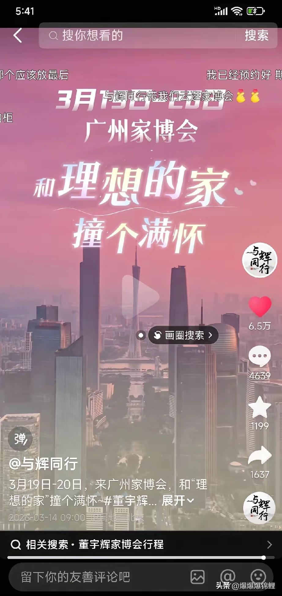 这流量真让人看不懂了,纯粹的单方面碾压。 今天看一眼数据,单场直播居然1600万人围观,最高11万人同时在线盯着。 光在直播间来回溜达就走了6600步,今年累计都五十多万步了。 这是搞带货还是搞拉练。 昨天与辉同行又甩出个新消息。 定在3月19号到20号直接空降广州家居博览会。 短短10天连着扫荡两大行业展会。 这搞法完全是不给其他同行留饭碗。 我觉得最绝的还不是数据,而是底下那些急眼的老板。 评论区全是被炸出来的实体商家,一个个排着队喊话“期待广州相见”。 现在这环境,多少中小卖家连投流费都掏不起。 但到了这种大IP面前,全都是上赶着求合作的。