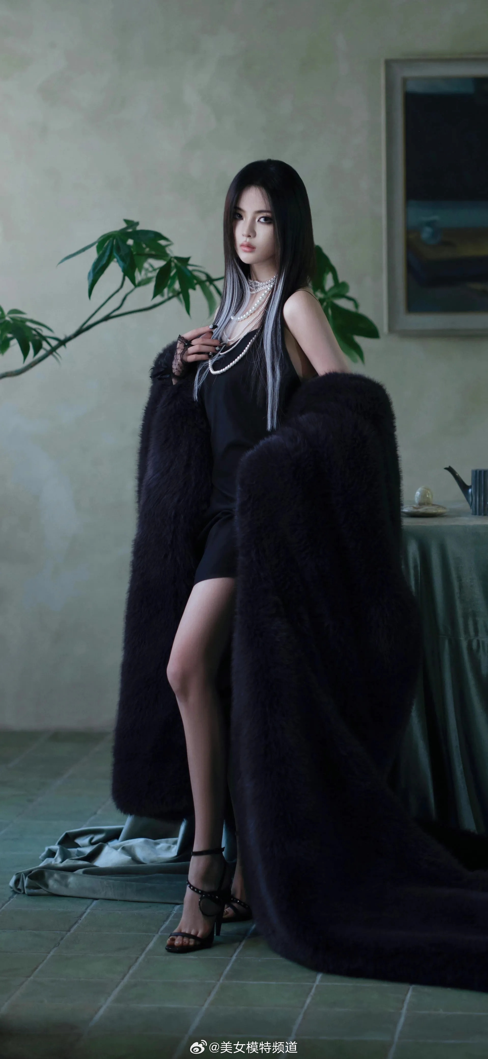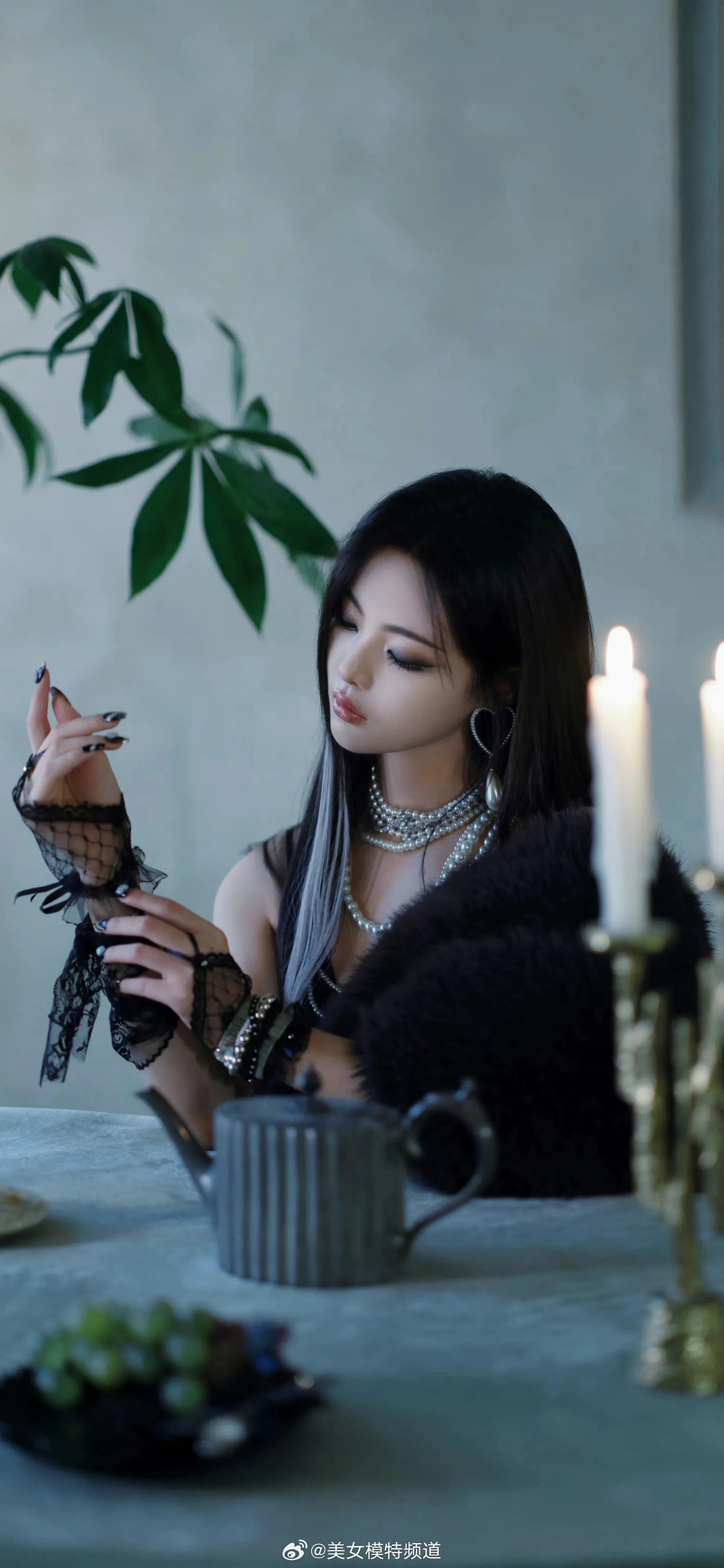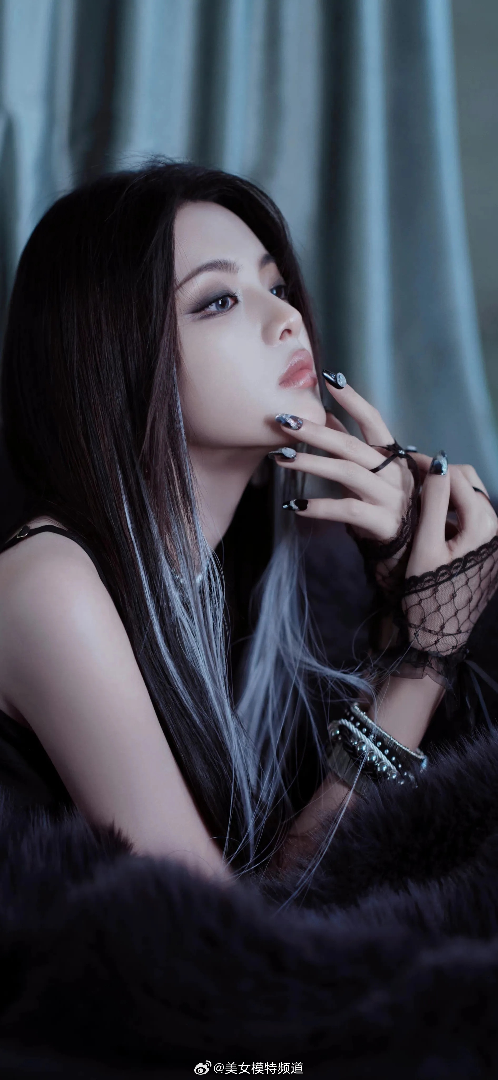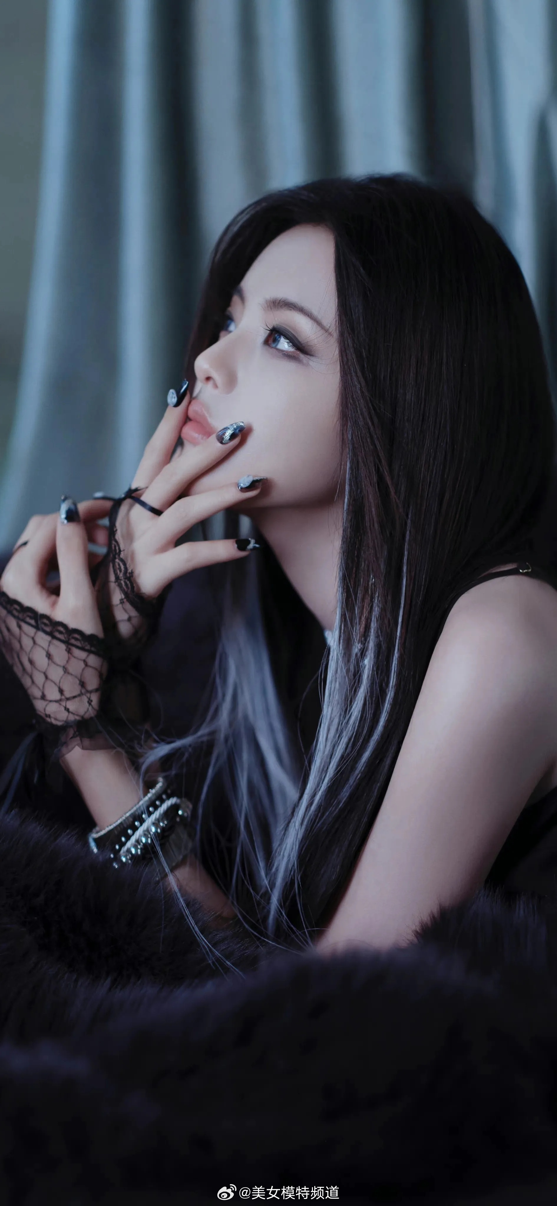 杨超越暗黑风格穿搭写真
