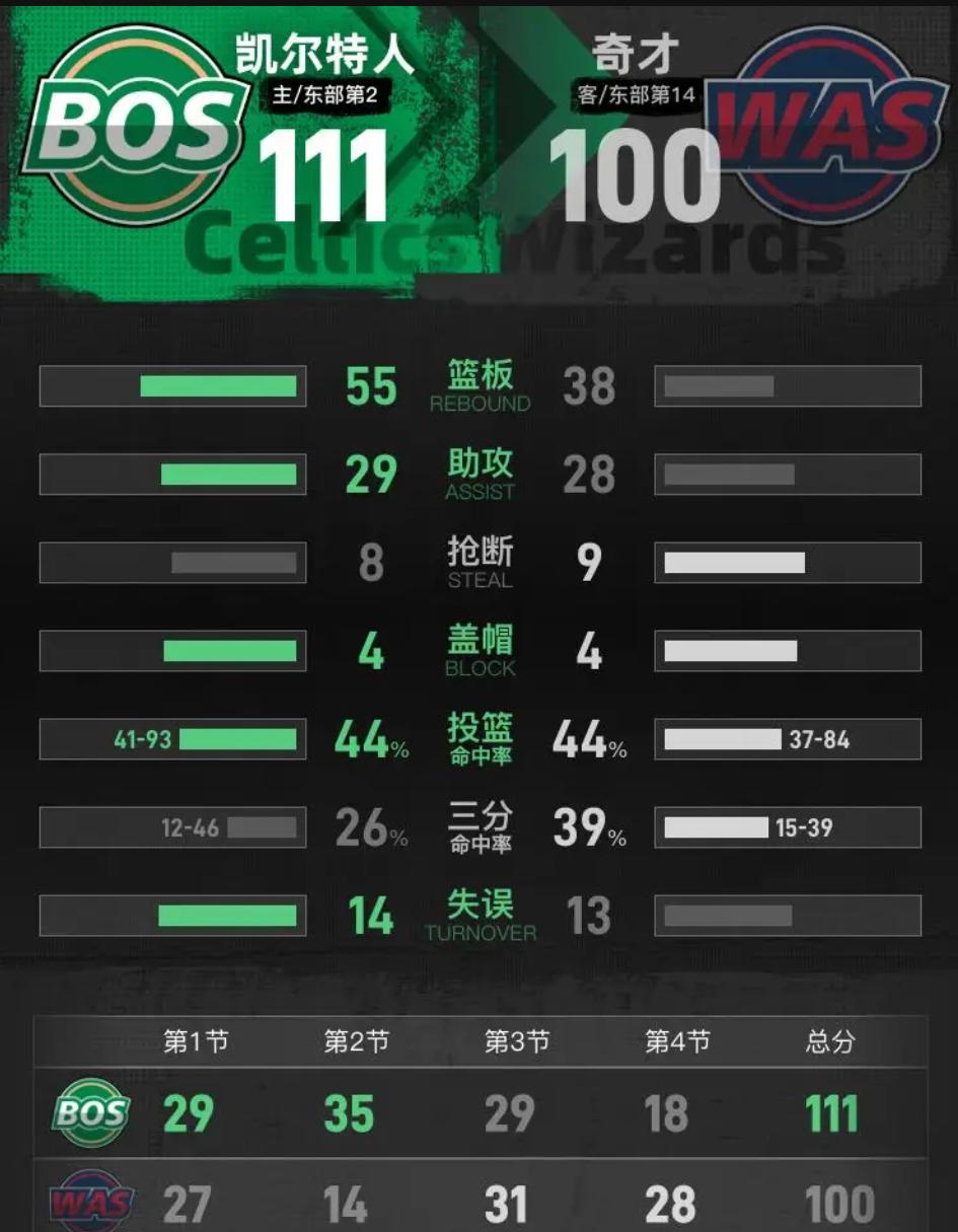111-100,赢是赢了,但这球看得我直打哈欠。 赢个11连败的奇才还这么费劲