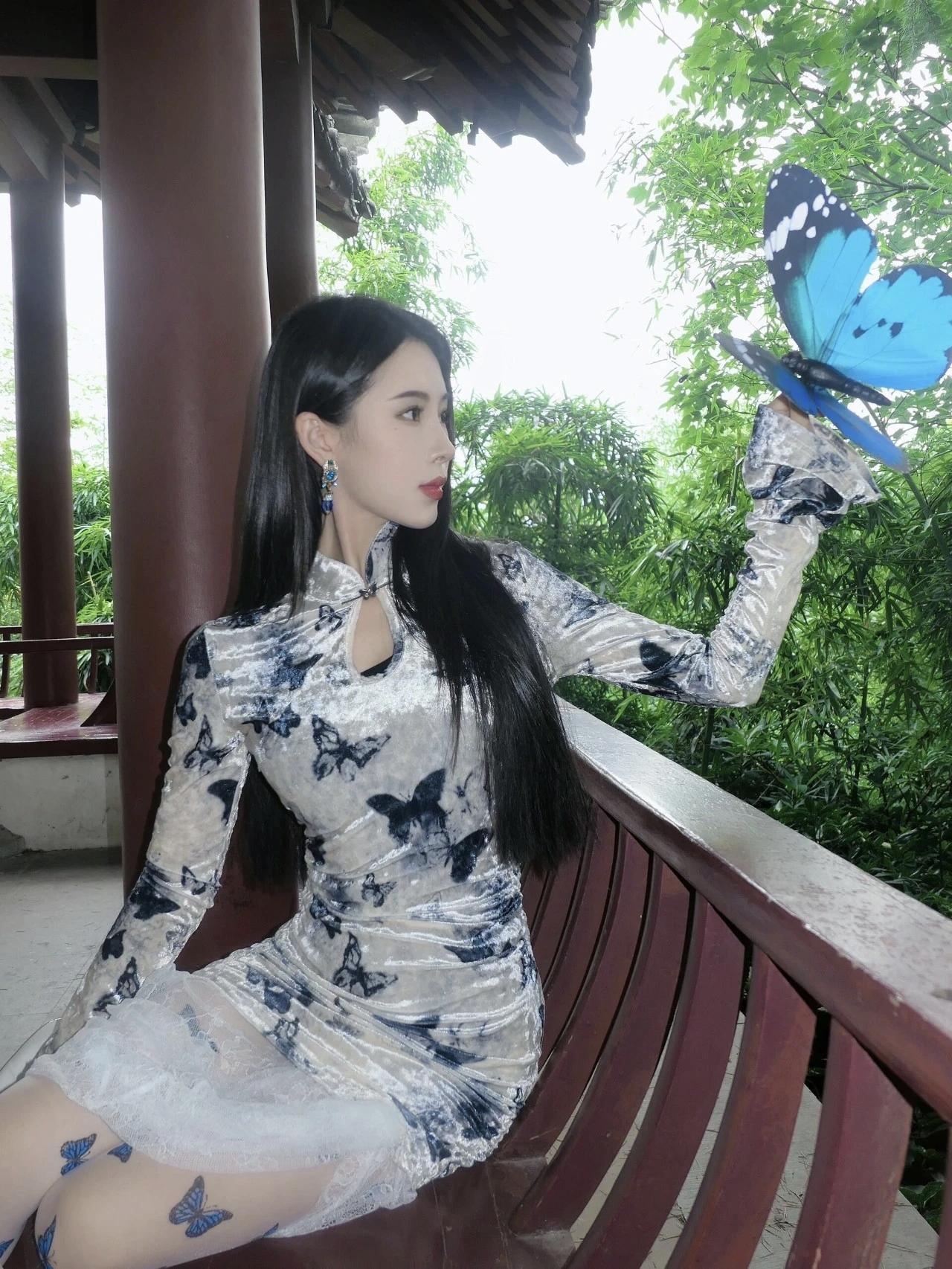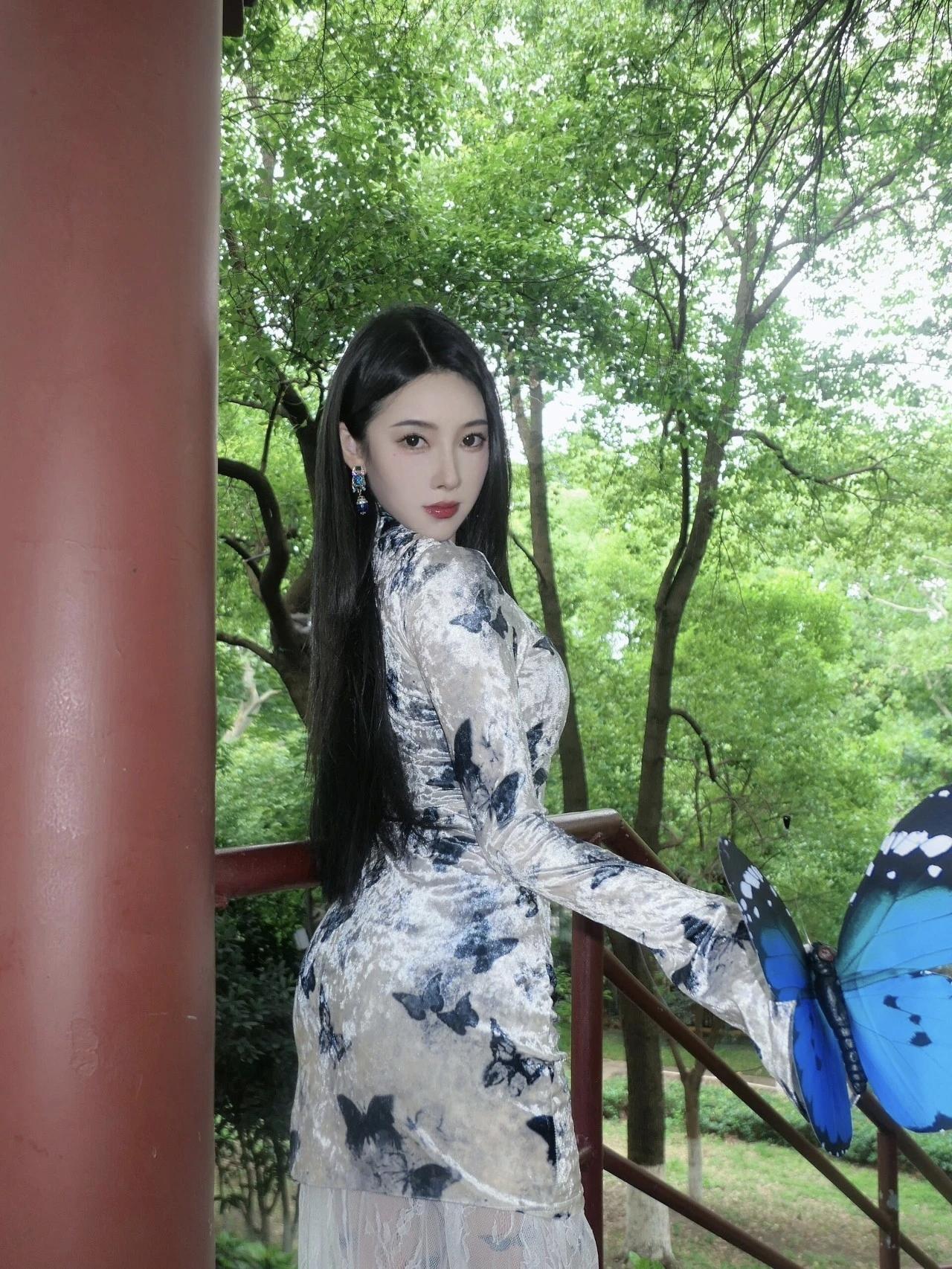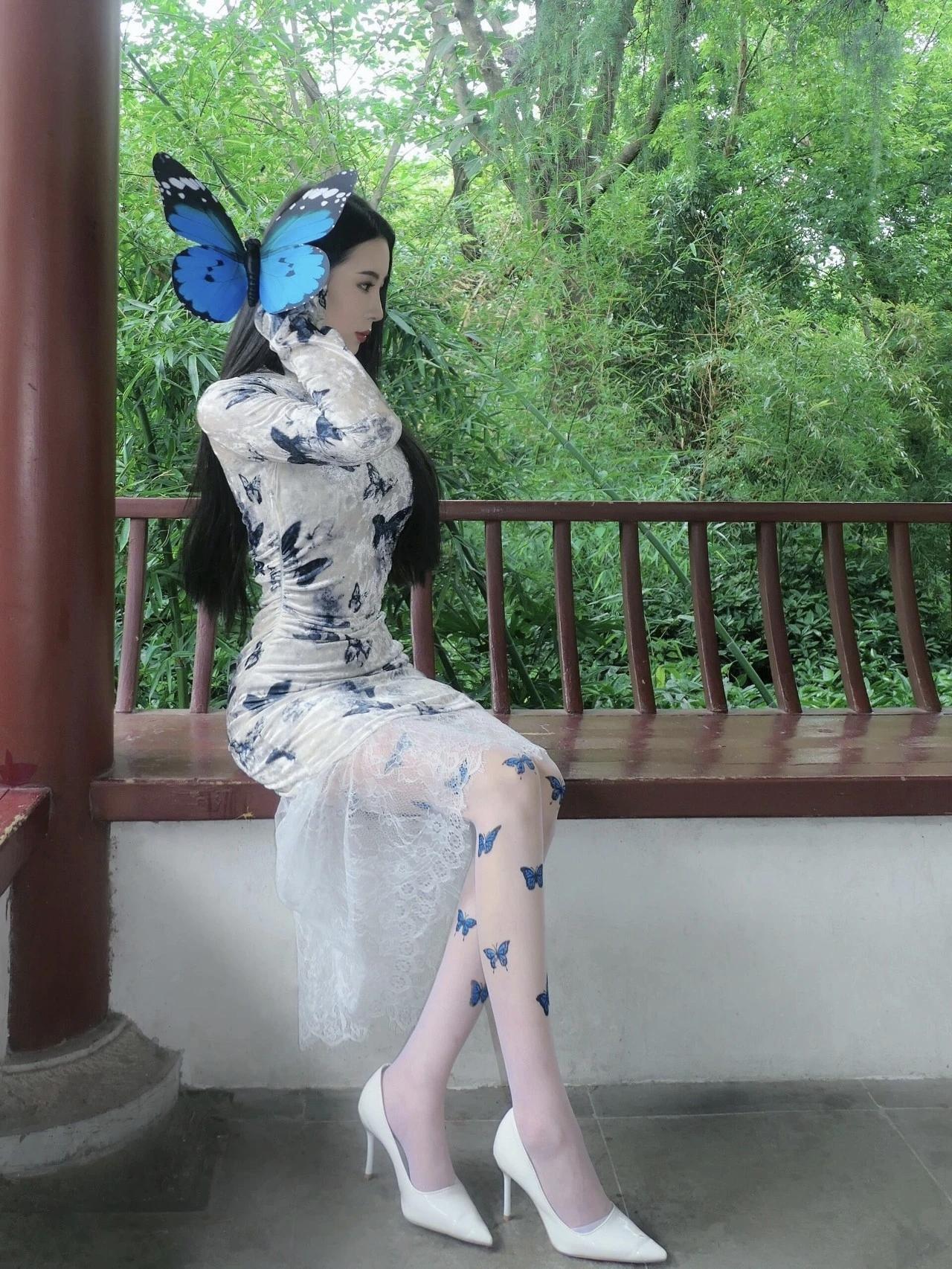 女生想要穿搭得时尚有品味,不妨试试古典与现代融合的风格。 就像这种白色长裙,用淡蓝色花卉与蝴蝶图案点缀,把春天生机和古典意象融入现代剪裁,花卉笔触细腻,蝴蝶姿态灵动,既致敬自然美,又传递“艺术即生活”。精致女神范穿搭