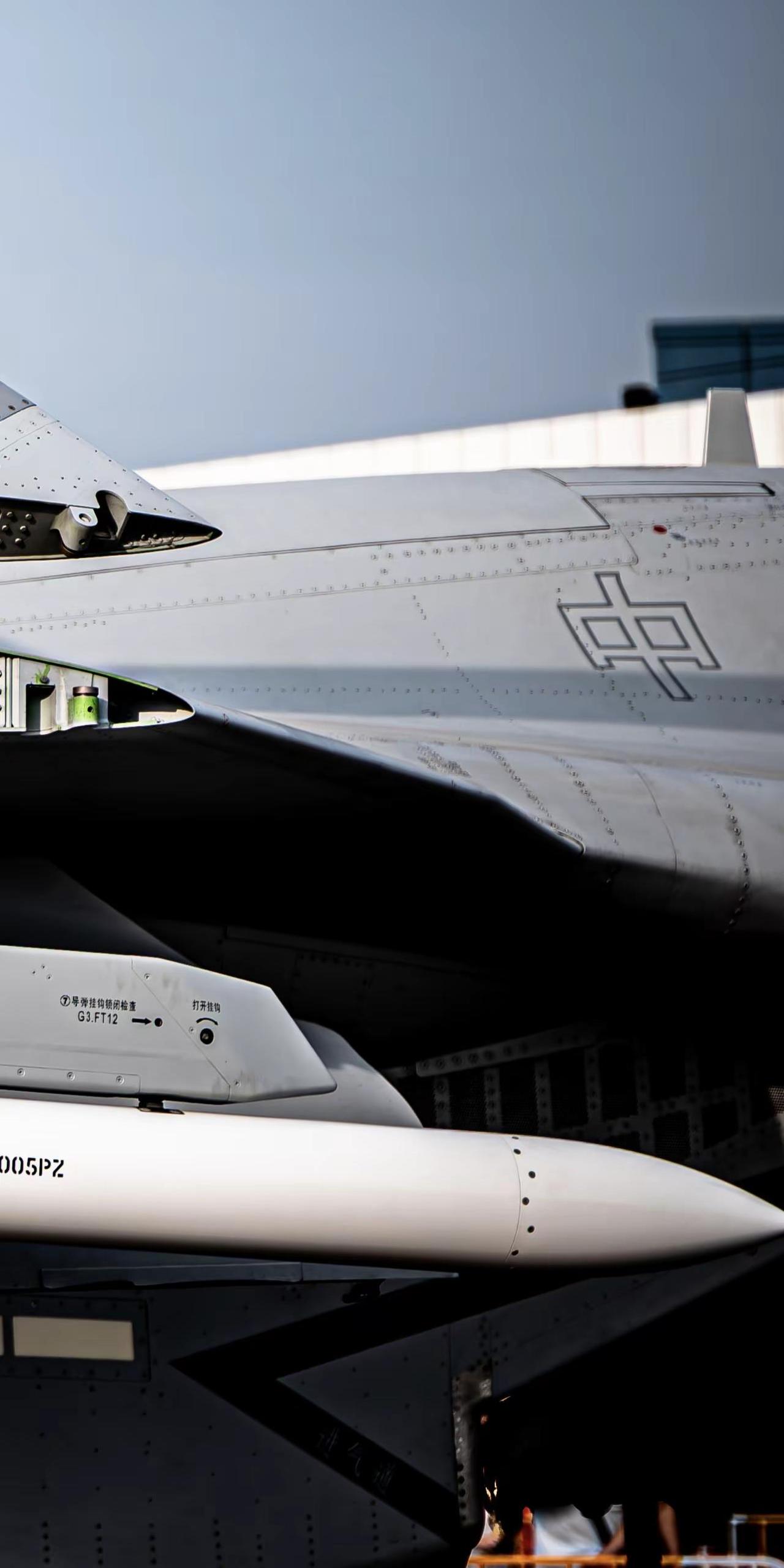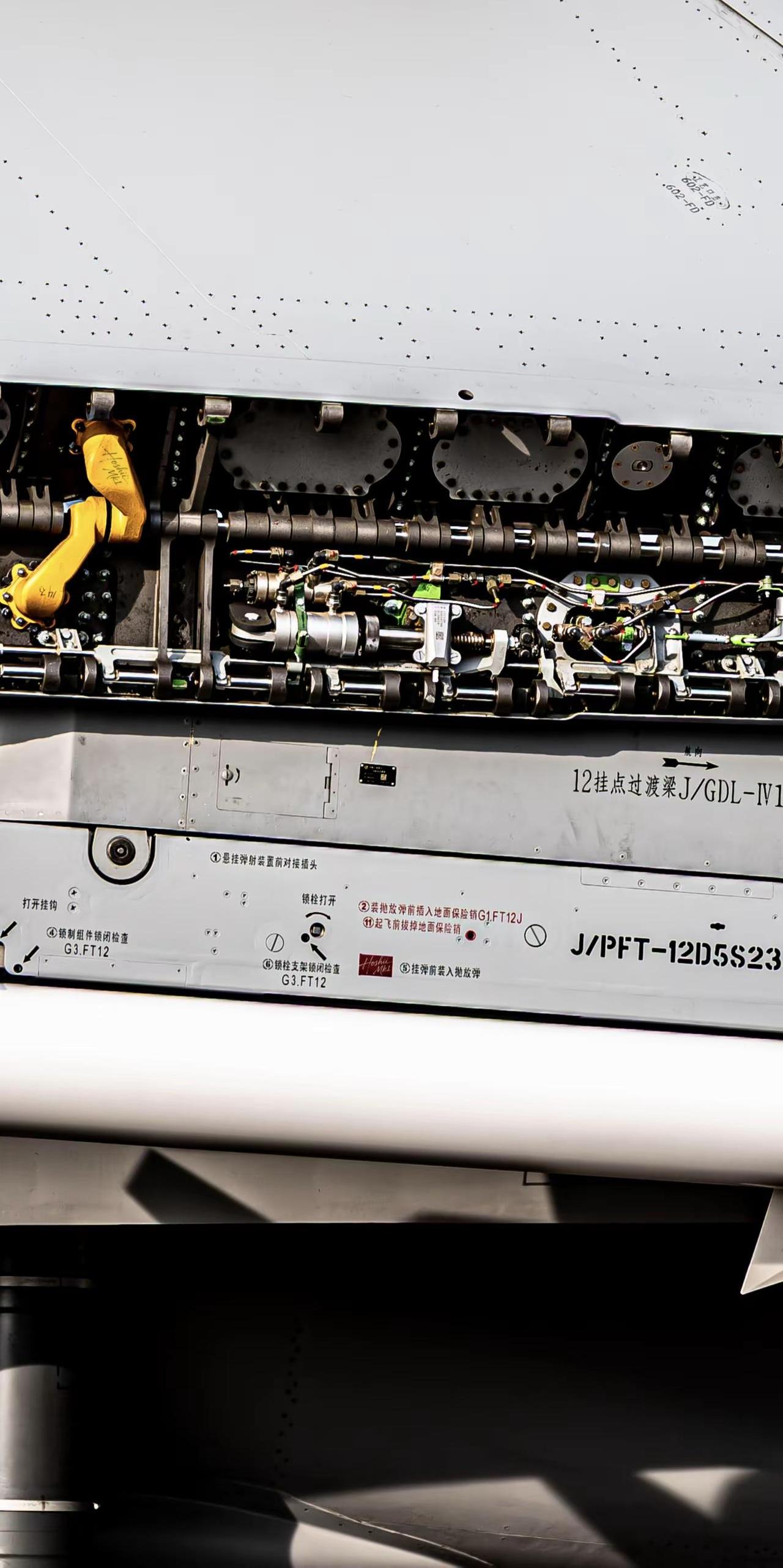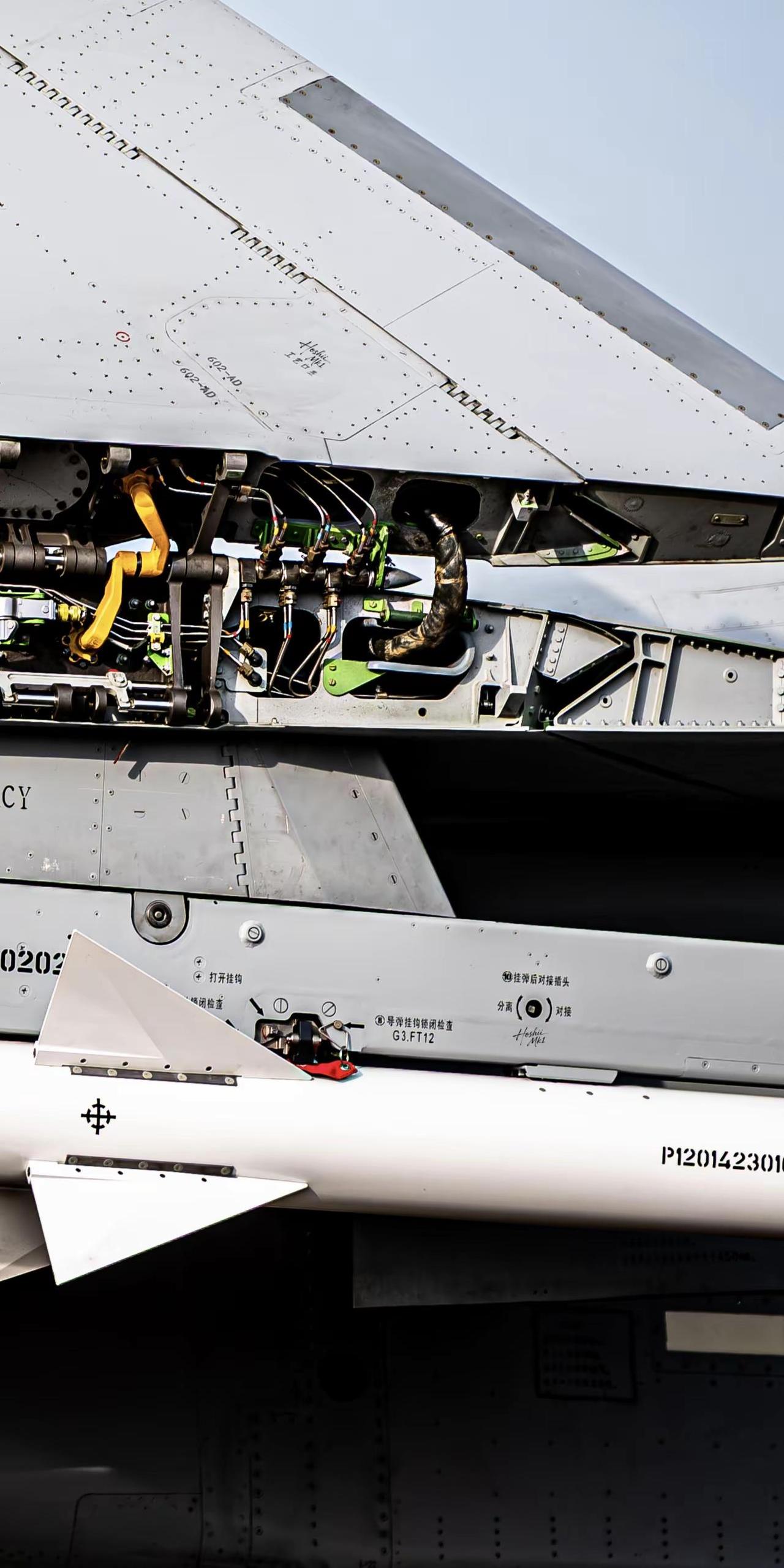 三折叠,怎么折,都有面。J15T铰链结构及翼下挂载PL12细节特写 追飞机的人 航空摄影 战斗机 中国空军