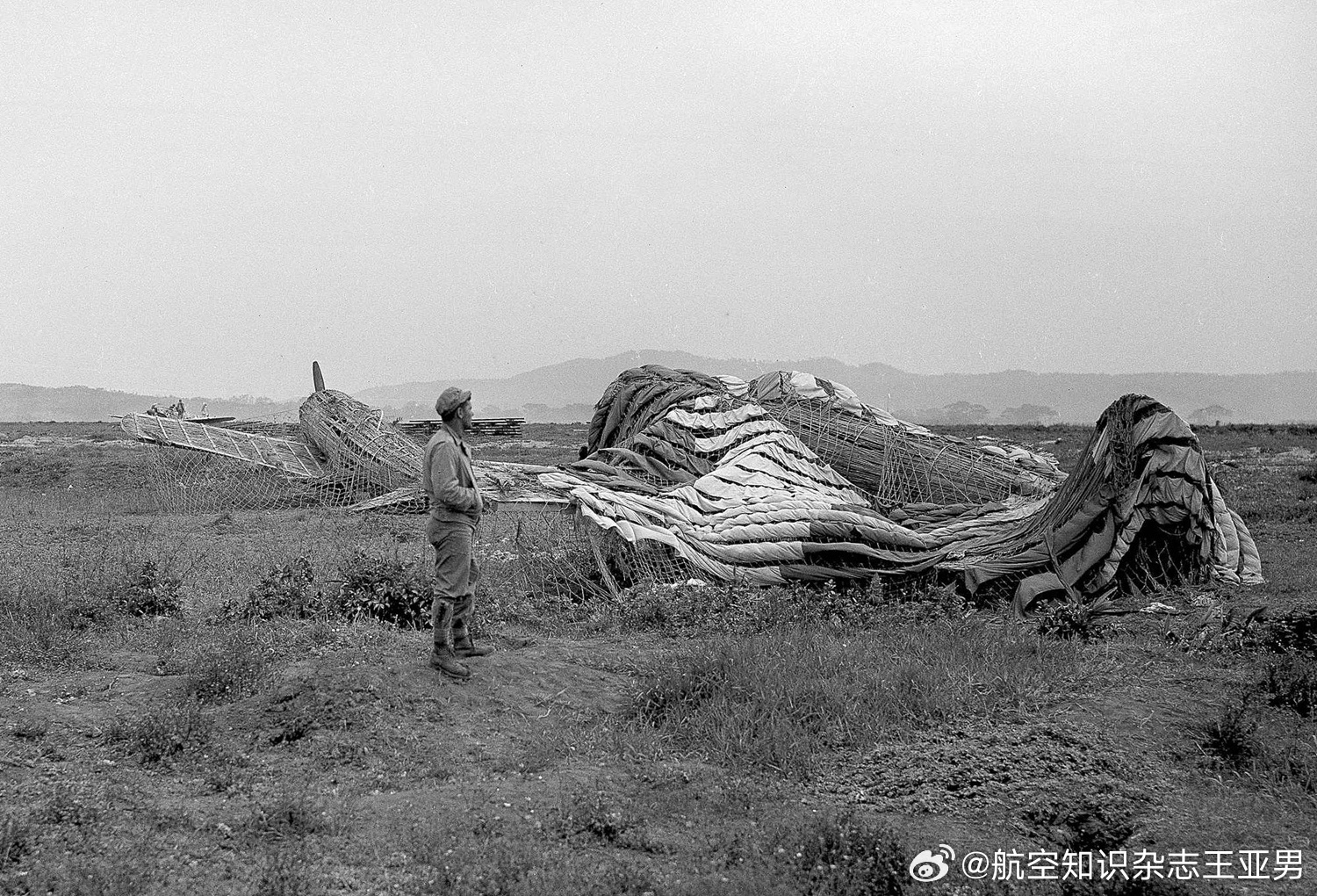#航空创作计划# 二战末期,面对美军强大的空中突击行动,日本大量采用了假目标实施迷惑行动。这是1945年美军在冲绳战役结束后拍摄的日军在嘉手纳机场布设的假目标飞机。这些飞机带有浓厚的亚洲风格,因地制宜采用木材制作框架,外覆草席或干脆用竹木搭建而成,外观还算不错。它们的使命,是诱使美军飞行员把弹药倾斜在自己身上,从而保护那些真正具有价值的作战装备。