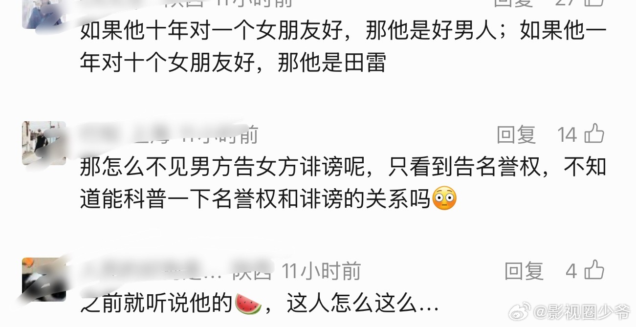 田栩宁 九成美杭州交通报的评论区:如果他十年对一个女朋友好,那他是好男人;如果他一年对十个女朋友好,那他是田雷