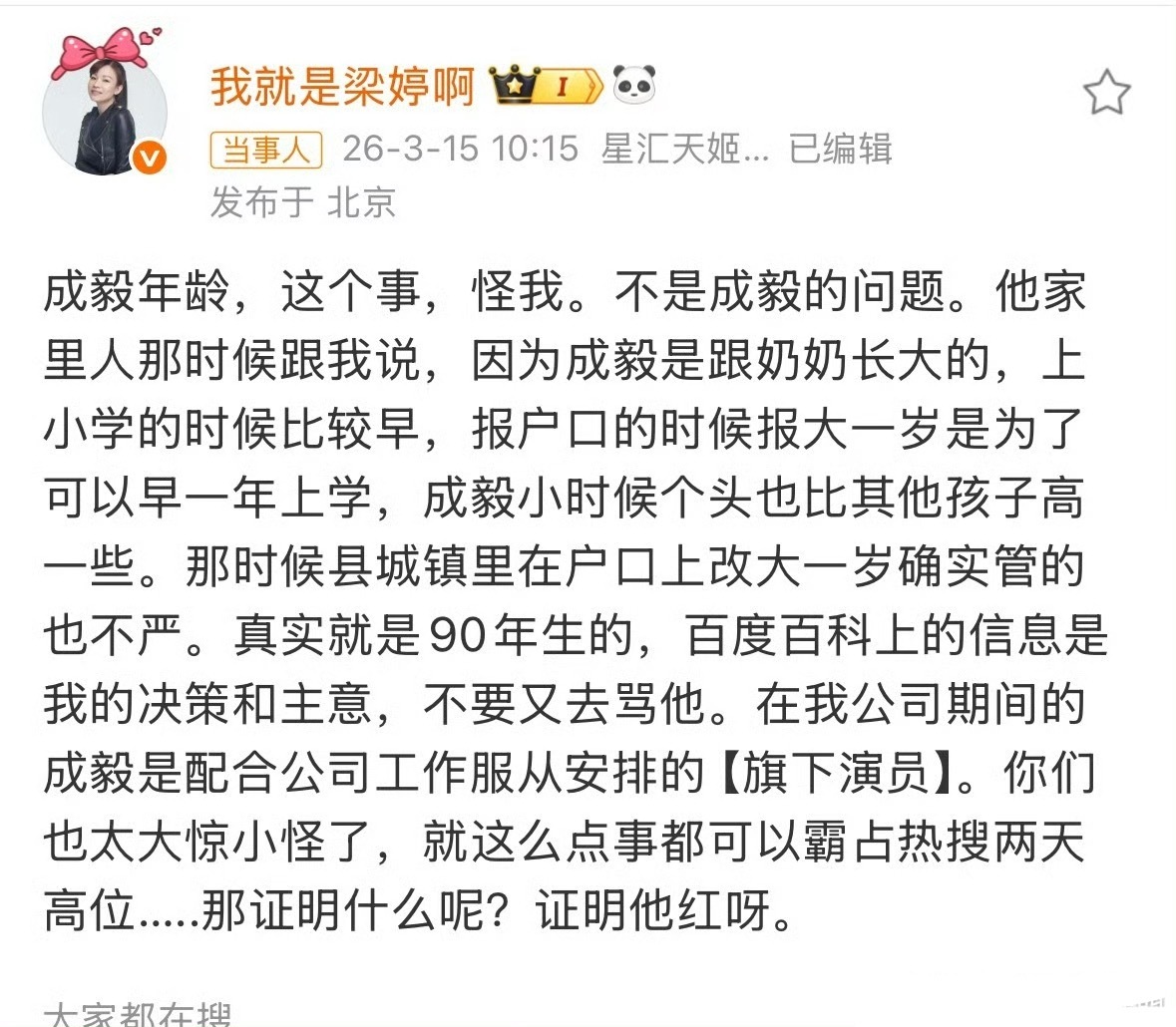 梁婷回应成毅年龄的问题。成毅 年龄