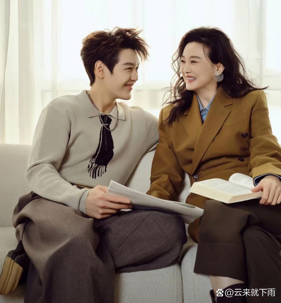 王艳和儿子杂志照。