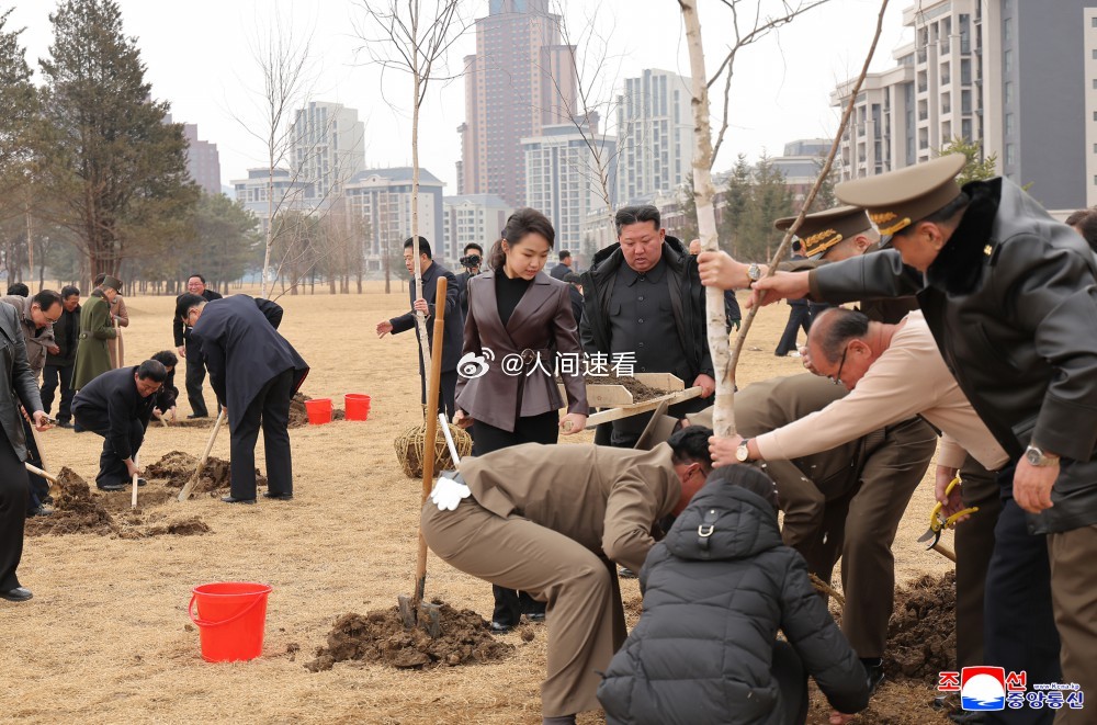 金正恩和女儿植树金正恩和女儿在植树节到来之际亲临新星大街栽树