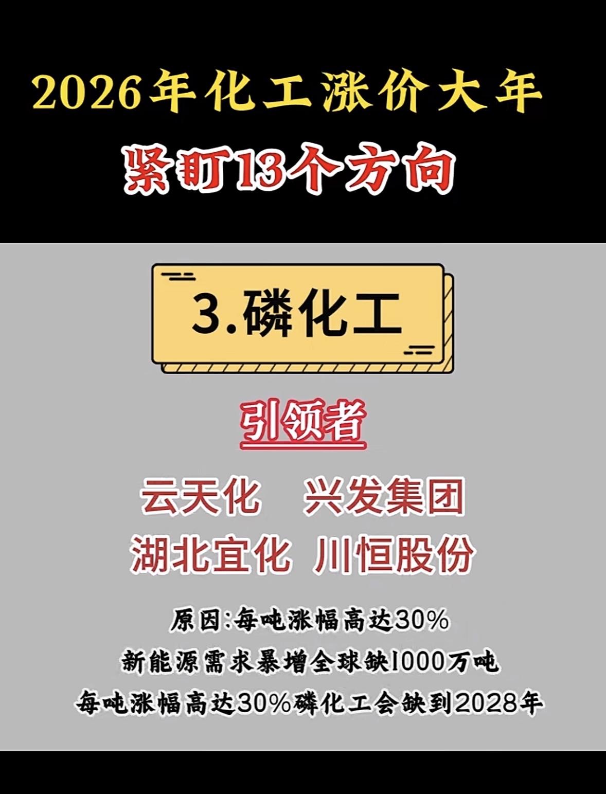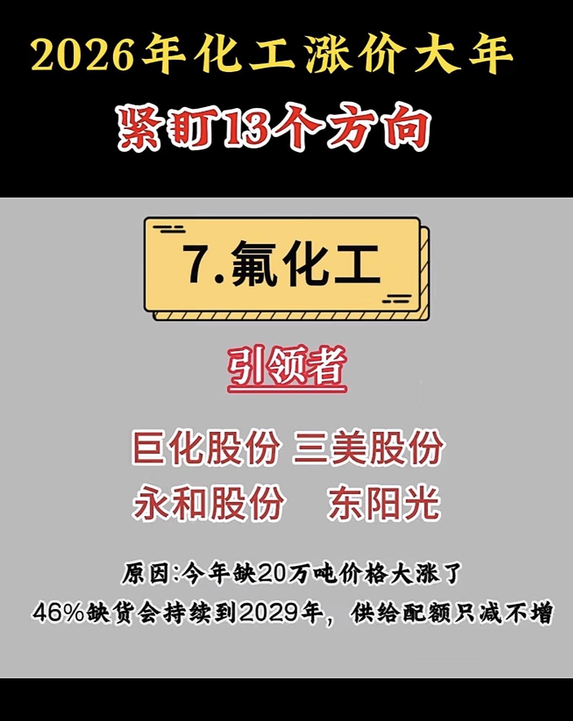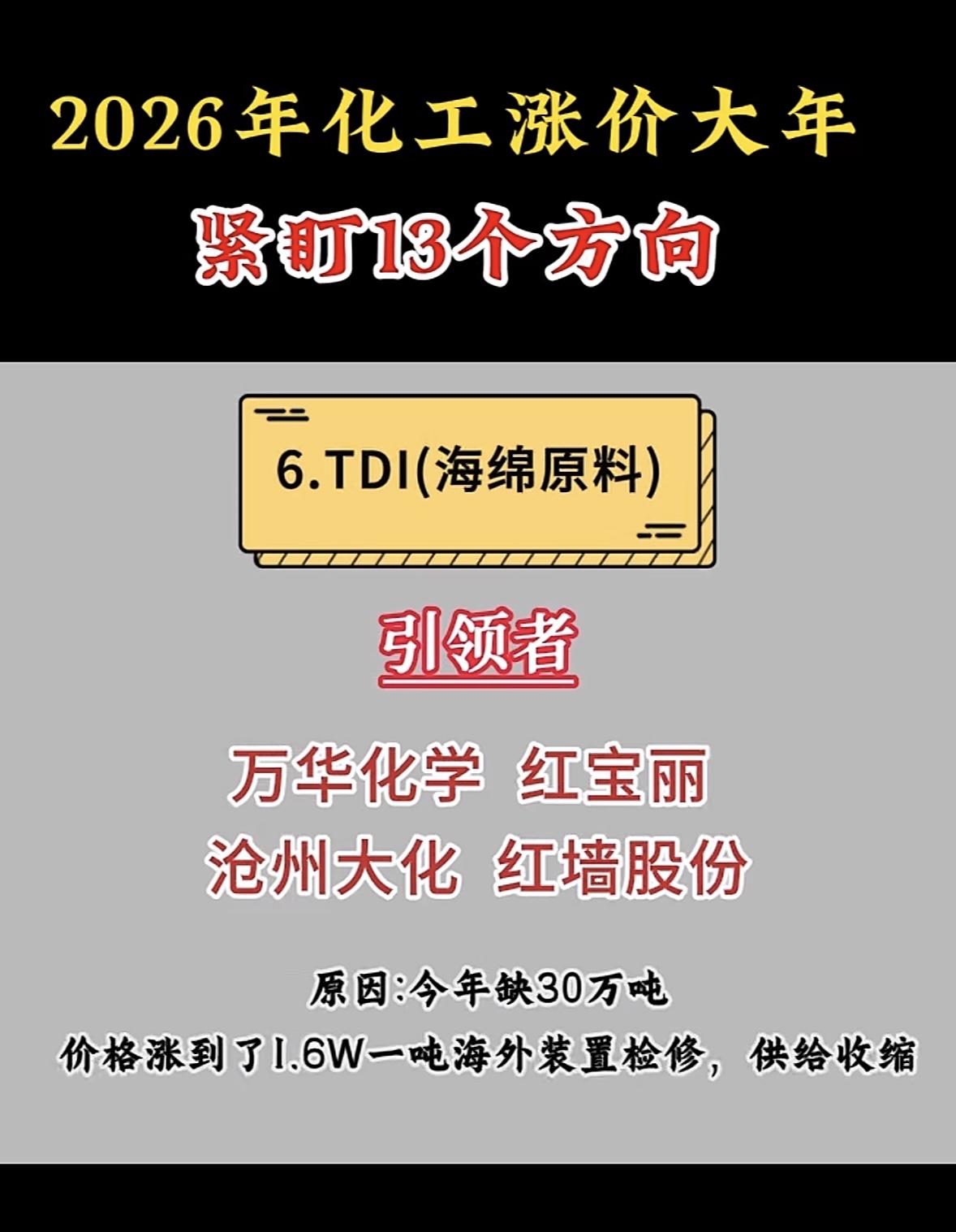 2026年化工涨价大年,13个方向紧盯! 听说2026年是化工涨价大年,有13