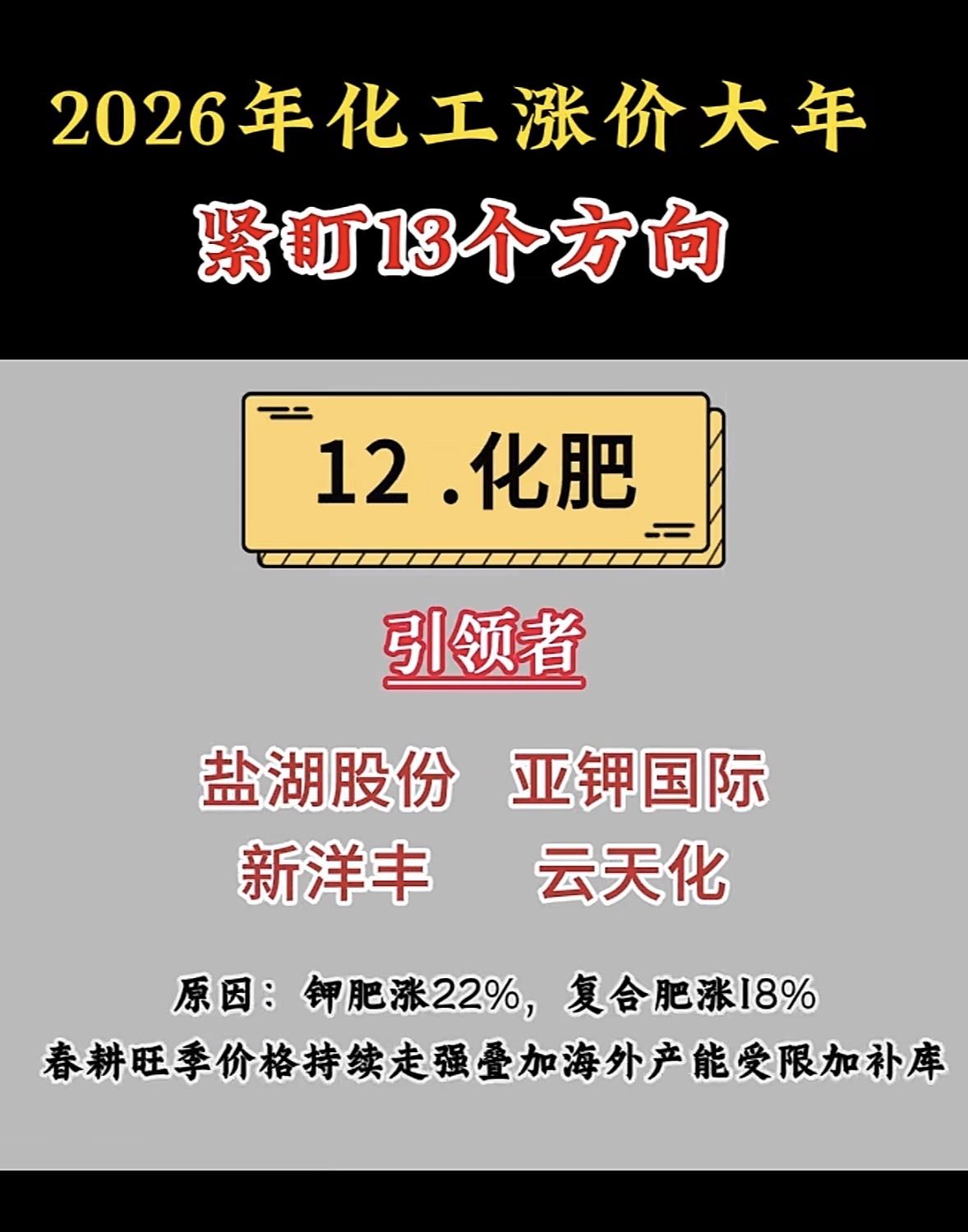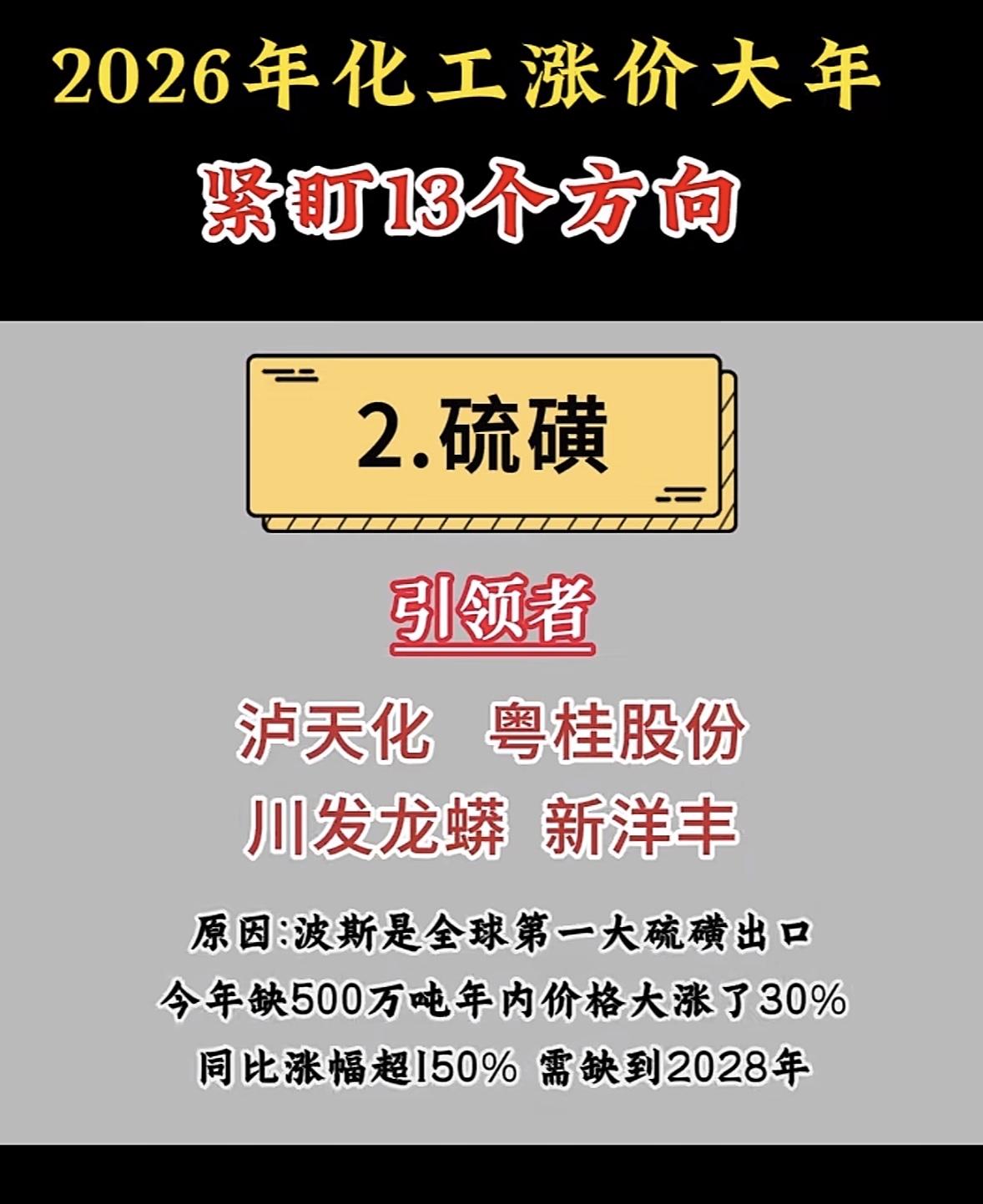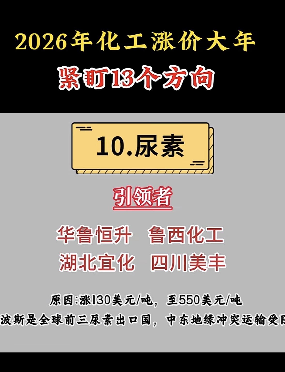 2026年化工涨价大年,13个方向紧盯! 听说2026年是化工涨价大年,有13