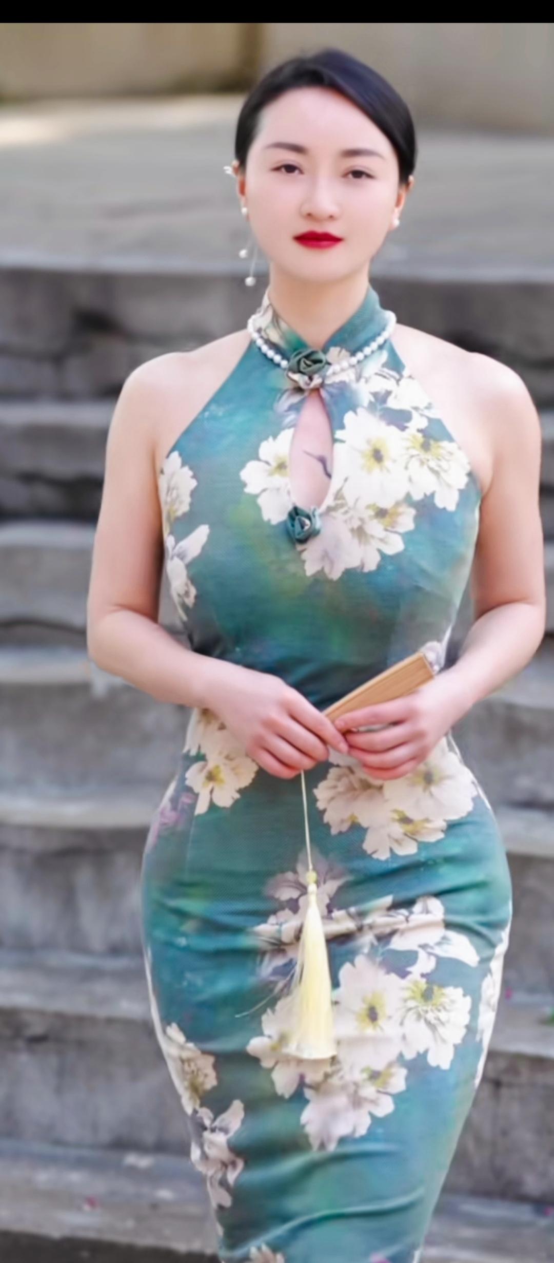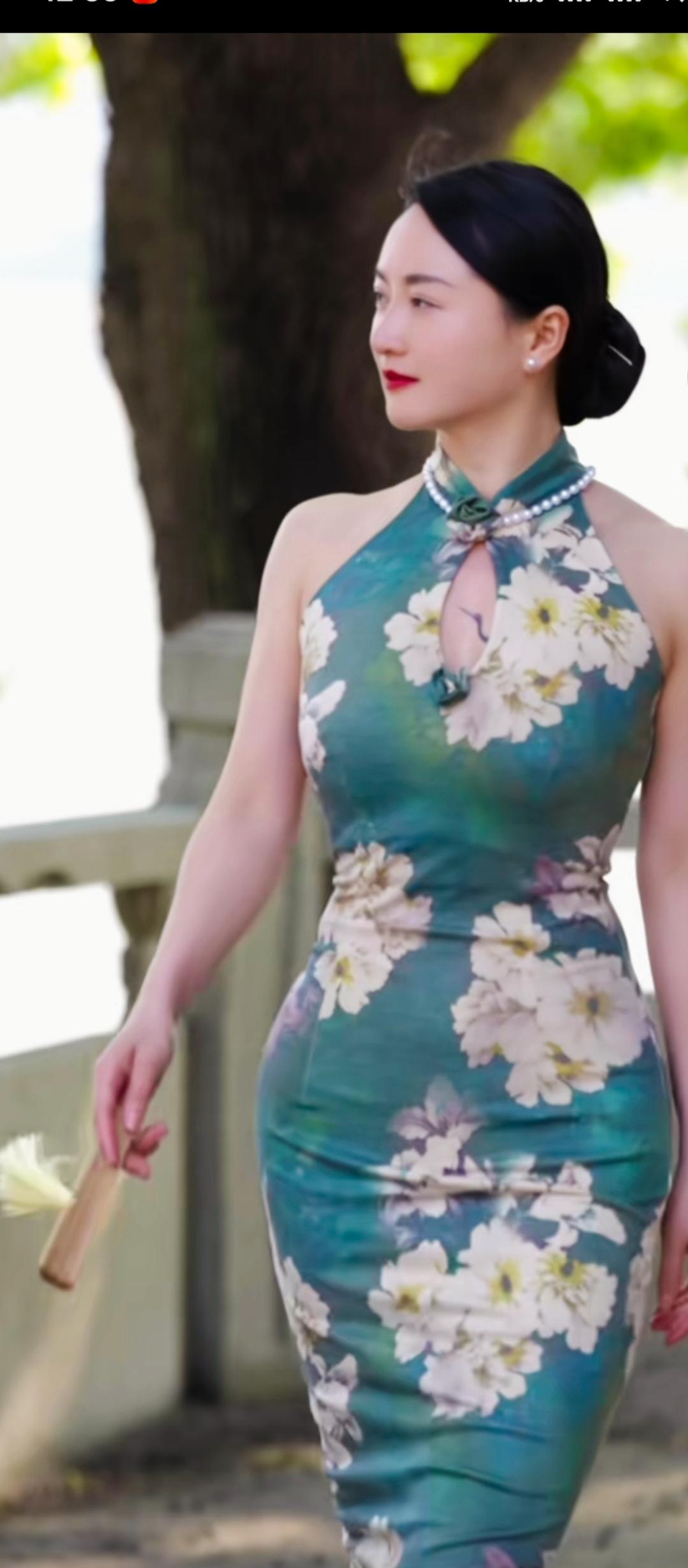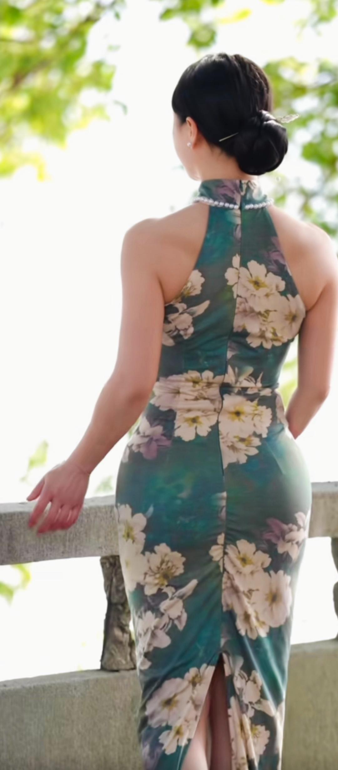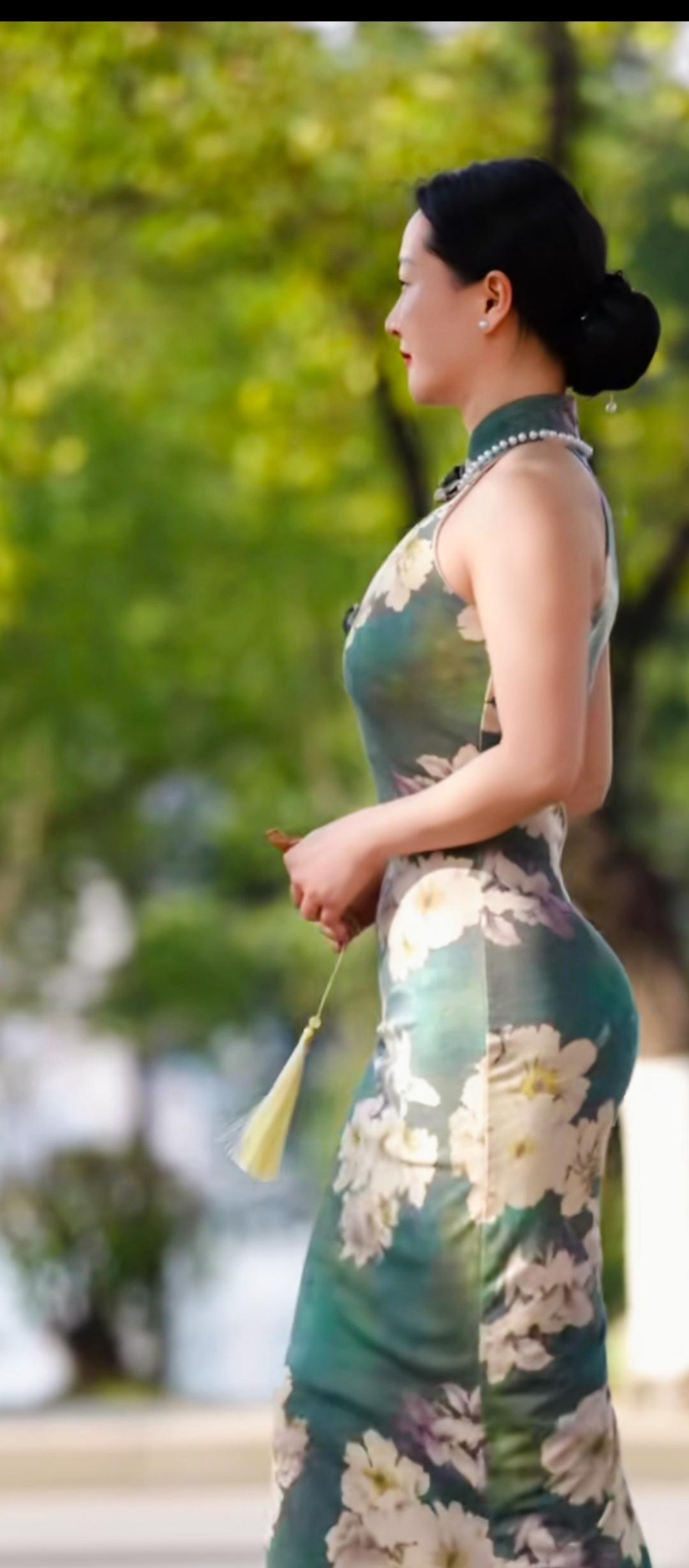 优雅旗袍,绿意盎然,韵味十足