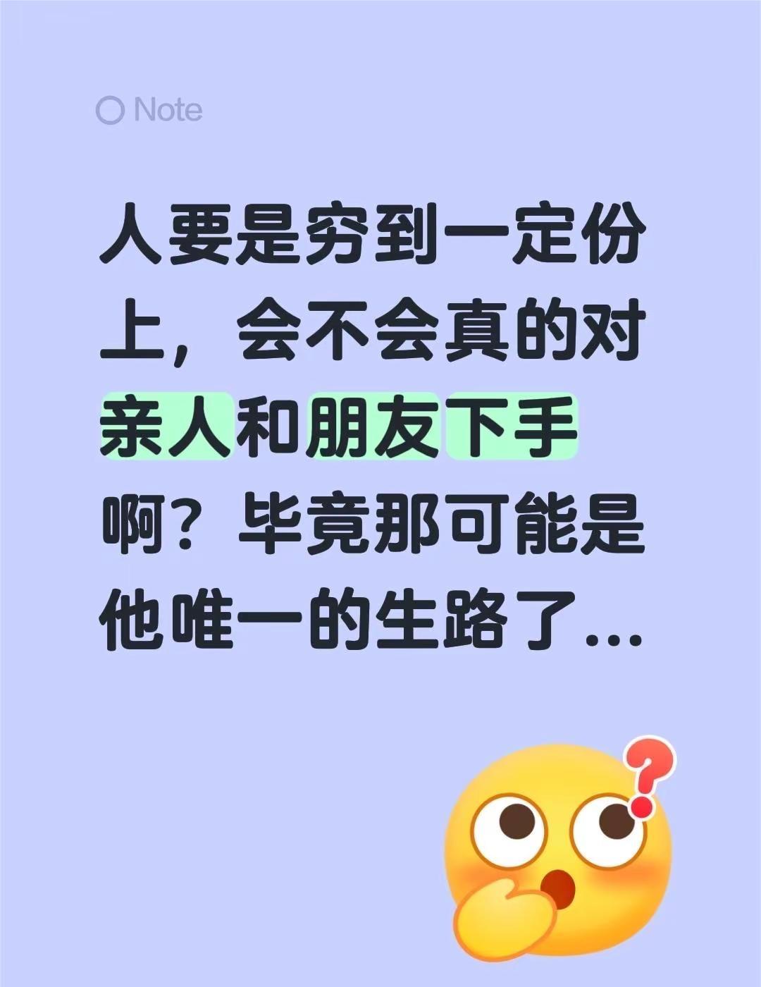 人要是穷到一定份上,会不会真的对亲人和朋友下手啊?毕竟那可能是他唯一的生路了...
