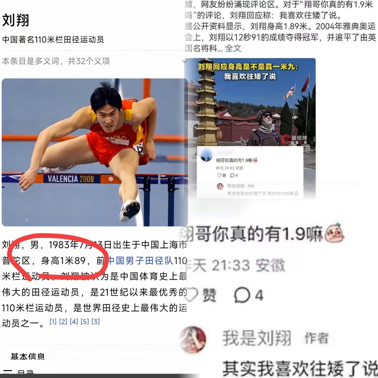 刘翔,冲上热搜! 3月14日深夜,许久没有消息的刘翔,连夜冲上热搜,原因是他一个举动,不仅暴露了自己的真实身高,也让网友get到了他的幽默感。 官方数据1米89,差1厘米到1米9,这波自嘲式凡尔赛,瞬间让网友笑翻。曾经他是赛场上破纪录的飞人,是中国田径的传奇,如今褪去光环,活得真实又随性。 真正的顶级运动员,从不需要靠身高、头衔包装自己。这份放下光环的通透,比任何数据都更圈粉。赛场他是王者,生活里他是有趣的普通人,这样的刘翔,才最让人喜欢。 你被刘翔这波幽默圈粉了吗?