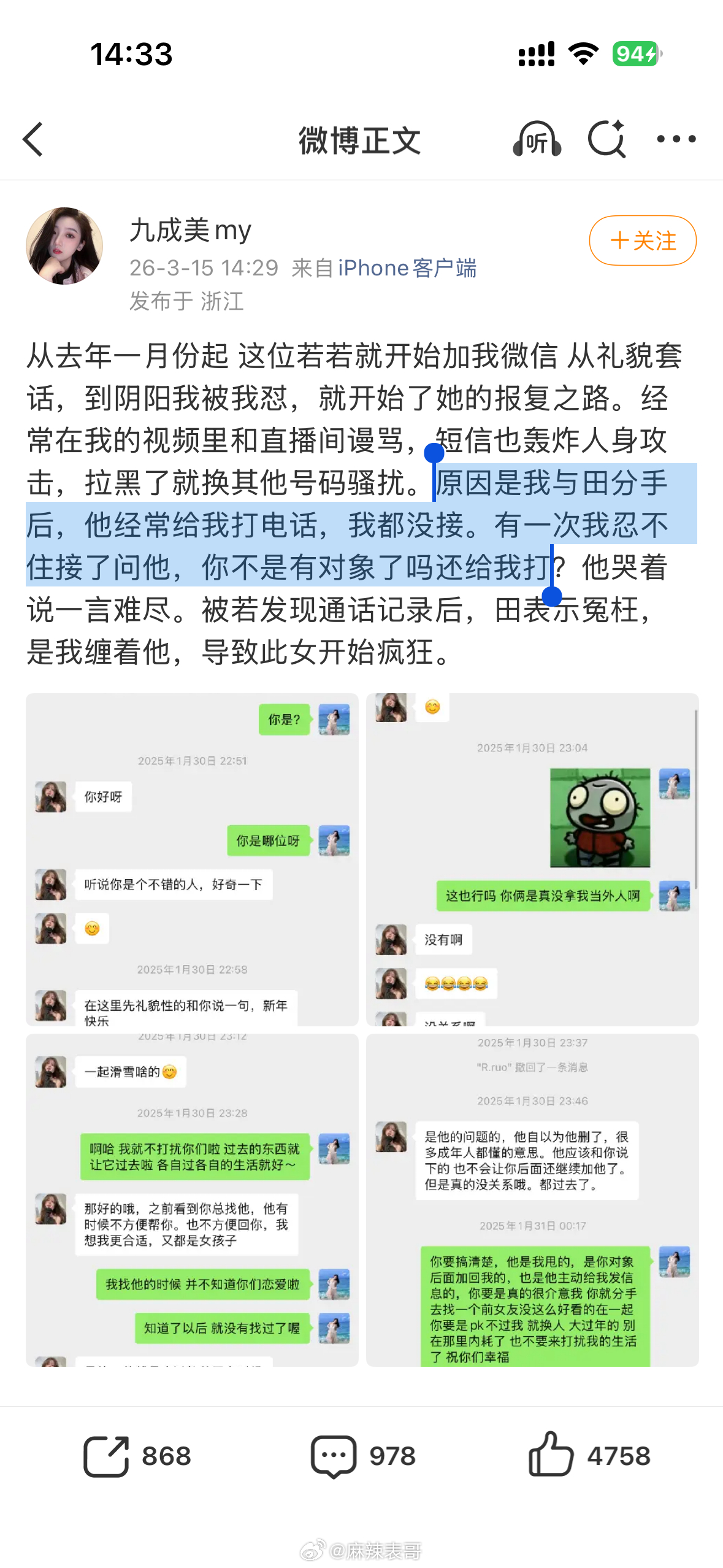 田栩宁和九成美分手后还经常打电话给九成美,说自己过得一言难尽。
