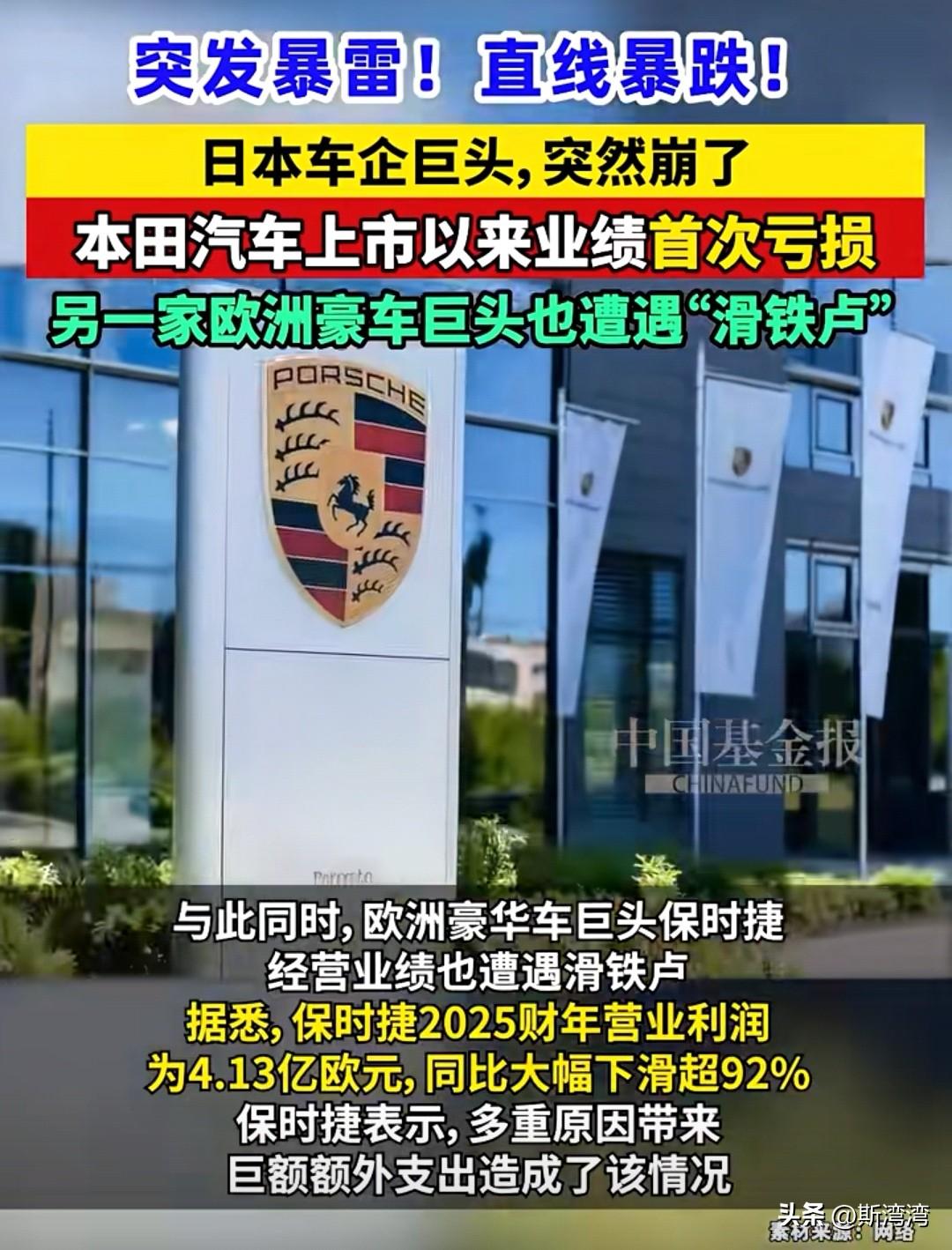 日本本田汽车暴雷,欧洲豪车巨头保时捷也遭遇滑铁卢!