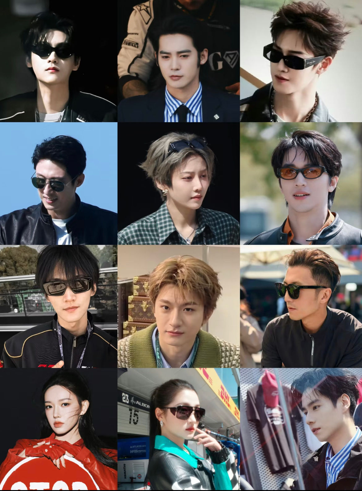 出席F1中国大奖赛中韩艺人明星张凌赫、于适、刘雨昕、李昀锐、田栩宁、谢霆锋、马龙、林孝埈、胡一天、关晓彤、黄景瑜、周柯宇、许魏洲、闫桉、程潇、钟辰乐、王霏霏、欧阳娜娜、李龙馥、李帝努、钟辰乐、蔡亨源、米卡、黄曦彦