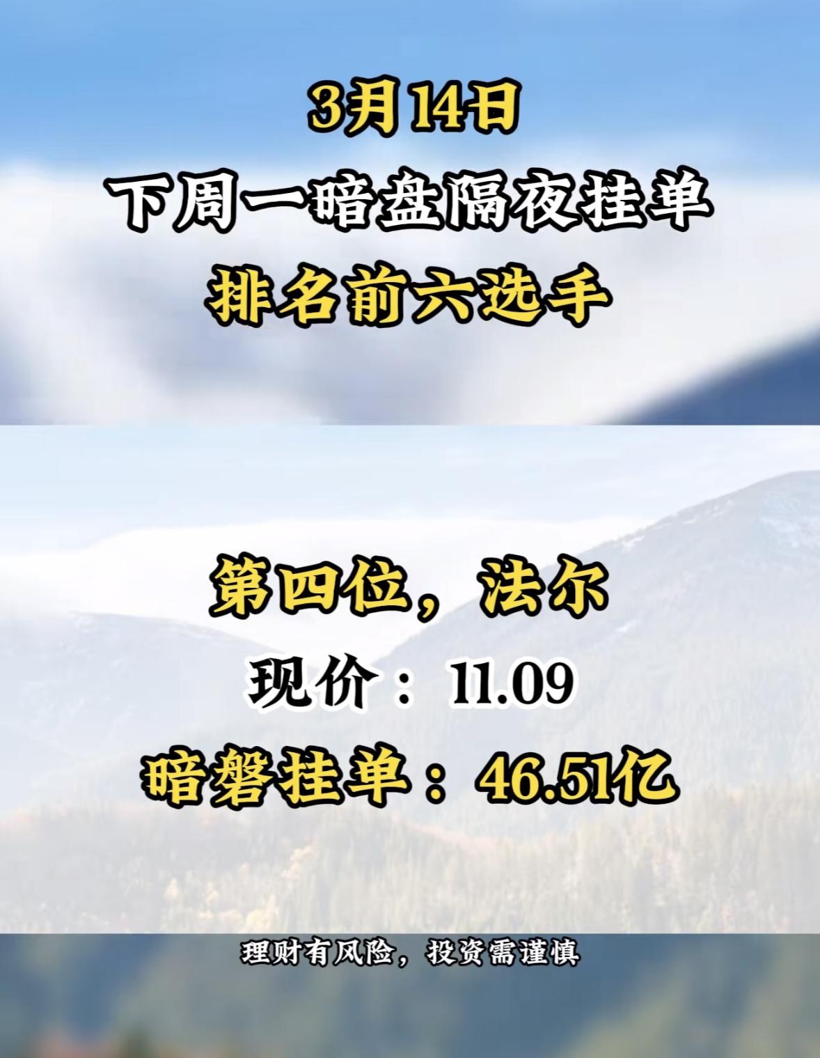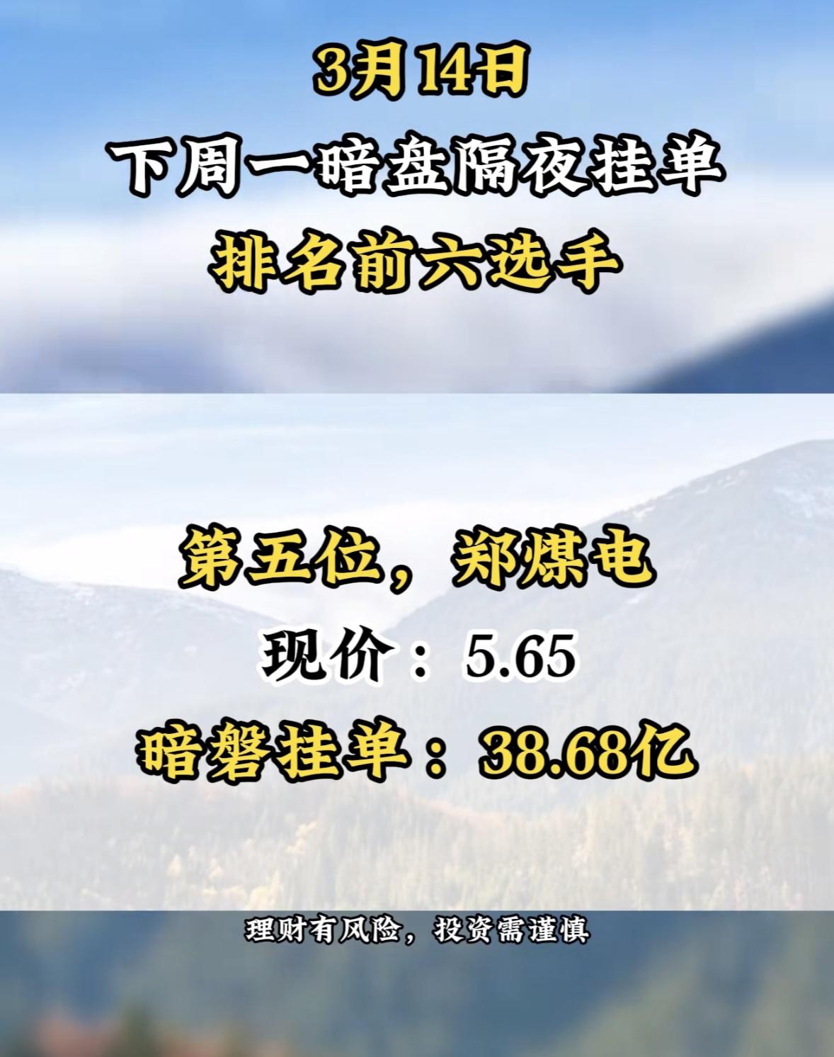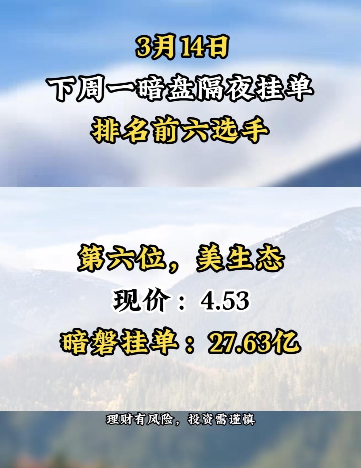 3月16日暗盘隔夜挂单个股揭晓。 3月16日美生态暗盘挂单排第六,现价4.53,这数字一出来,估计不少投资者心里又开始痒痒了。就像之前3月11日暗盘,洲际油气等股票挂单数据一出来,投资群都炸了。美生态这公司,之前名字换了好多次,从深华新A到现在的美丽生态,经历了不少波折。 不过投资这事儿,可不能光看暗盘挂单排名。很多散户看到数据就容易冲动,买单多就加仓,卖单大就想套现。但暗盘数据背后是利益的博弈,挂单排名也没那么神。所以面对美生态这情况,还是那句话,投资需谨慎!