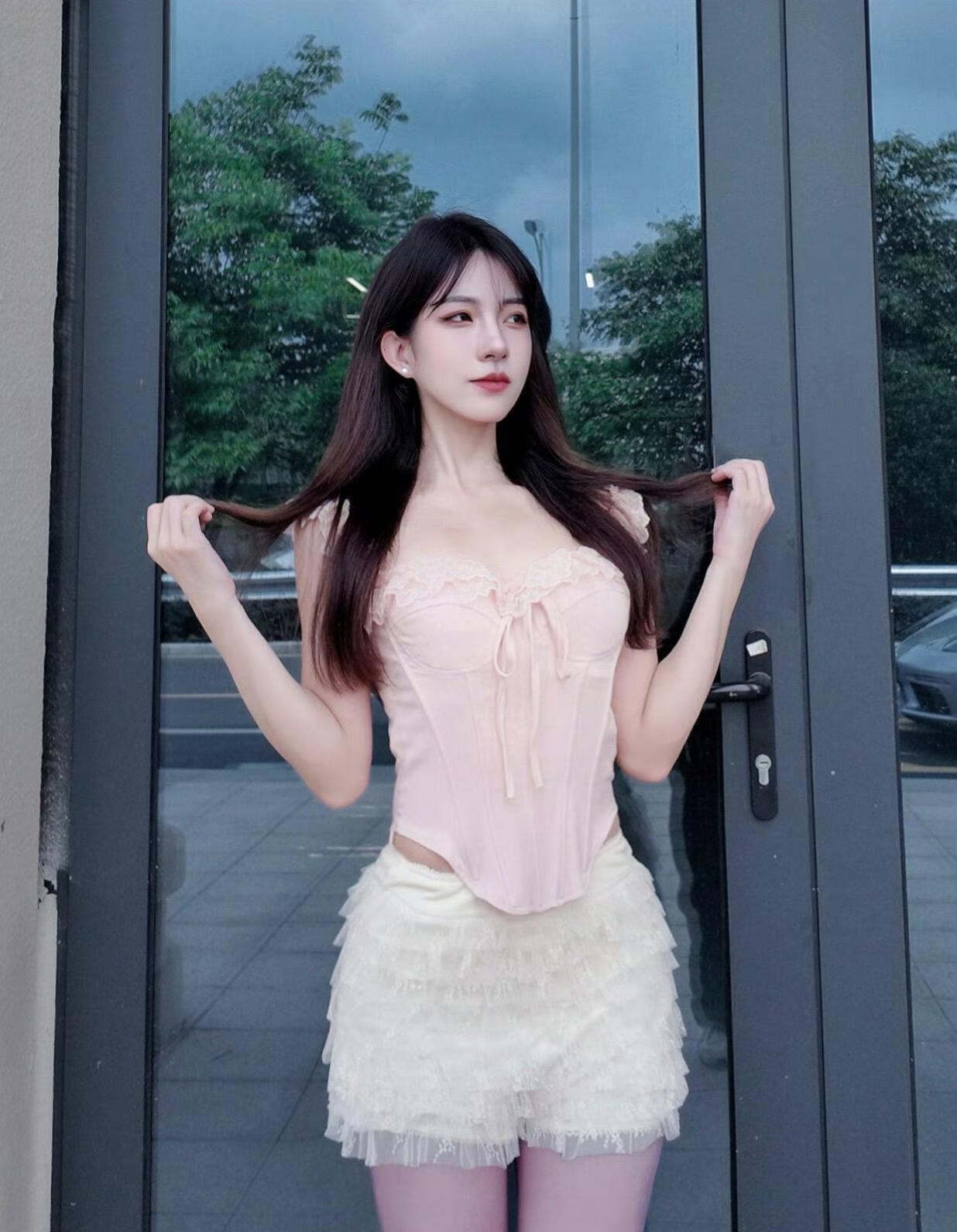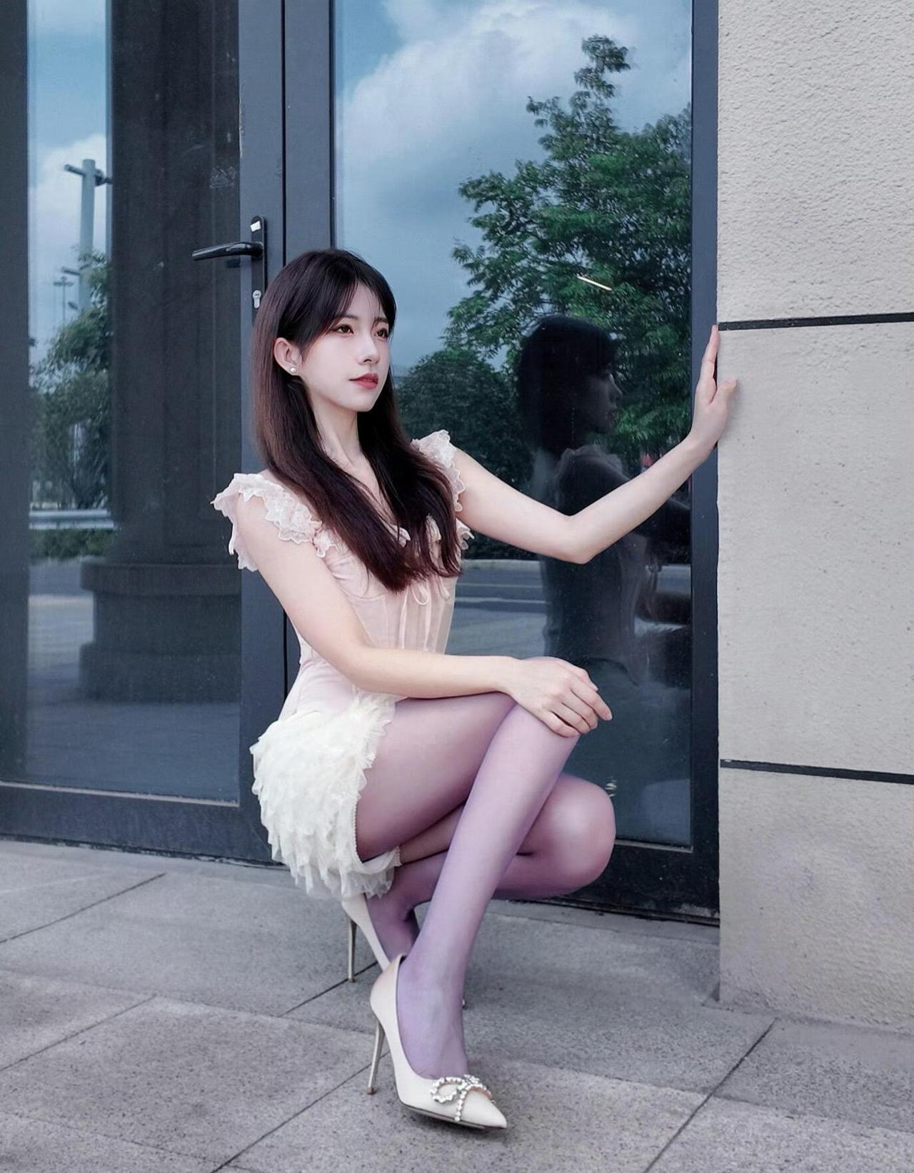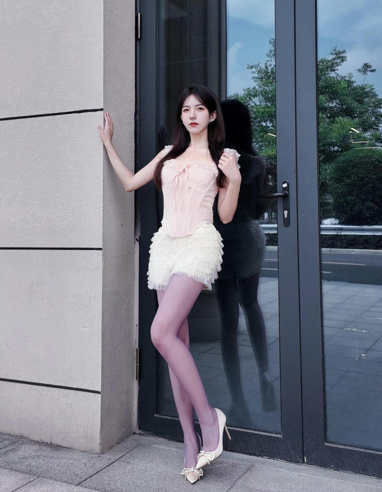 这套是甜欲公主风,核心是粉白蕾丝套装:紧身上衣+蓬蓬裙自带甜妹公主感,淡紫丝袜增加了柔媚细节,珍珠装饰高跟鞋强化了精致氛围,整体甜而不腻。粉系少女感穿搭 洋气蓬蓬裙穿搭