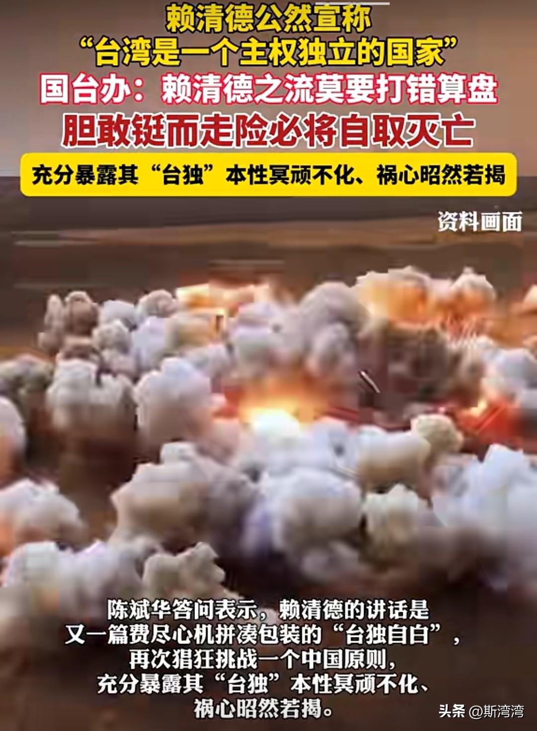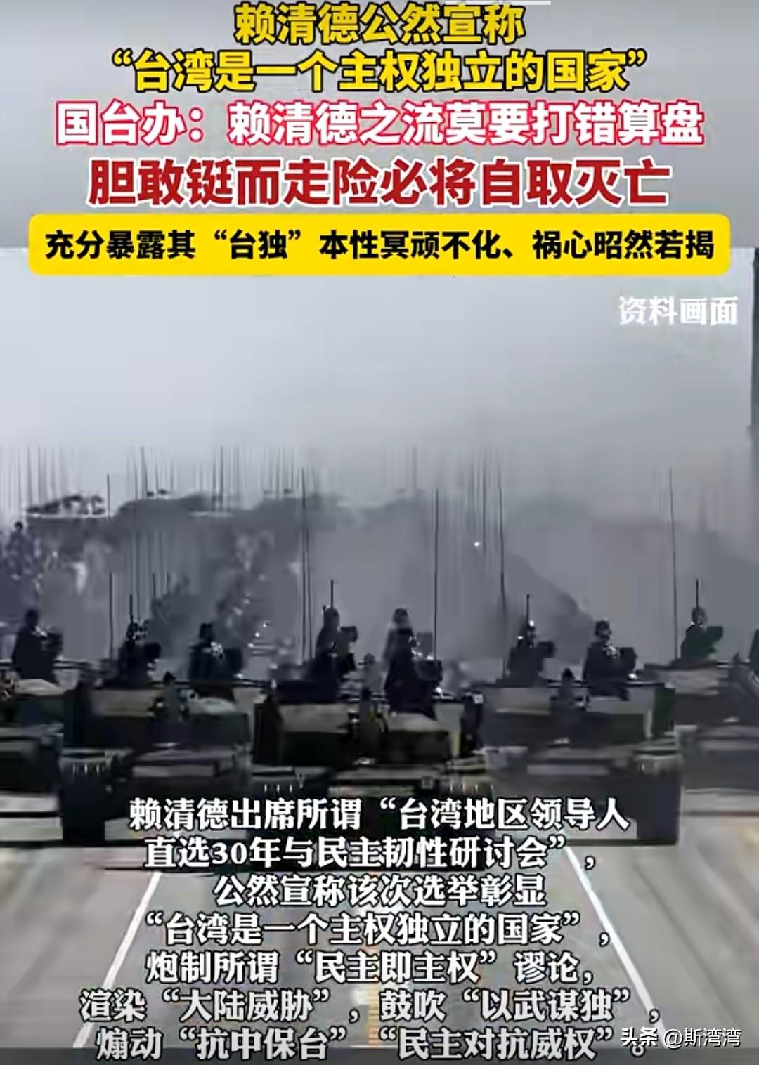 赖清德要狗急跳墙了! 以台独分子赖清德为首的台独伪政权最近跳的特别欢,主要原因就是美国被拖入中东战争,全世界一片混乱,台独分子眼见形势不妙等不急了就有狗急跳墙的野心,再加上旁边小日本的助力,最近日子应该会剑拔弩张,大有一触即发阵仗! 咱们必须做好随时打日收台的准备,因为外围局势非常严峻,高市早苗和台独伪政权蠢蠢欲动,非常嚣张,必须做好万全准备!