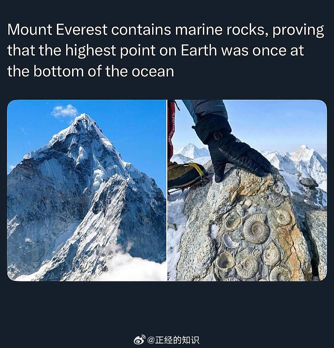 四亿多年前,珠穆朗玛峰曾经被淹没在水下。