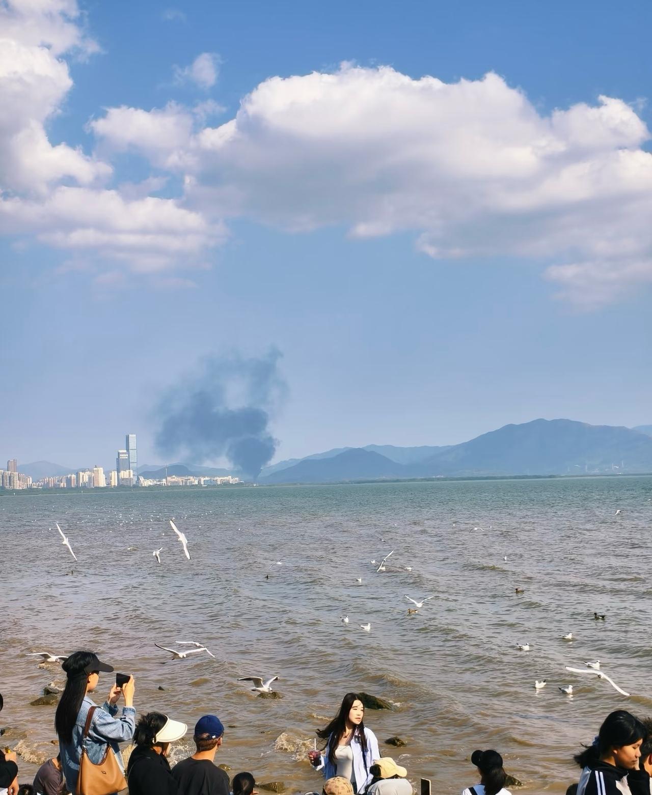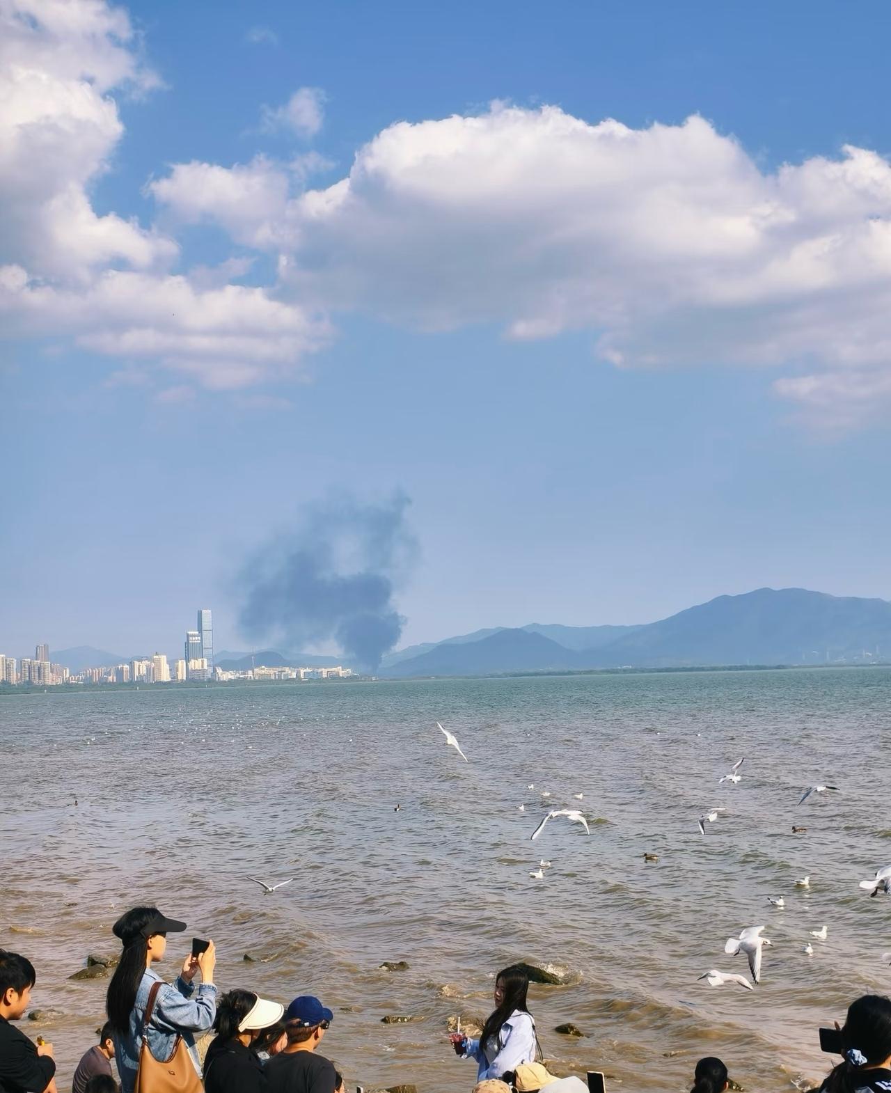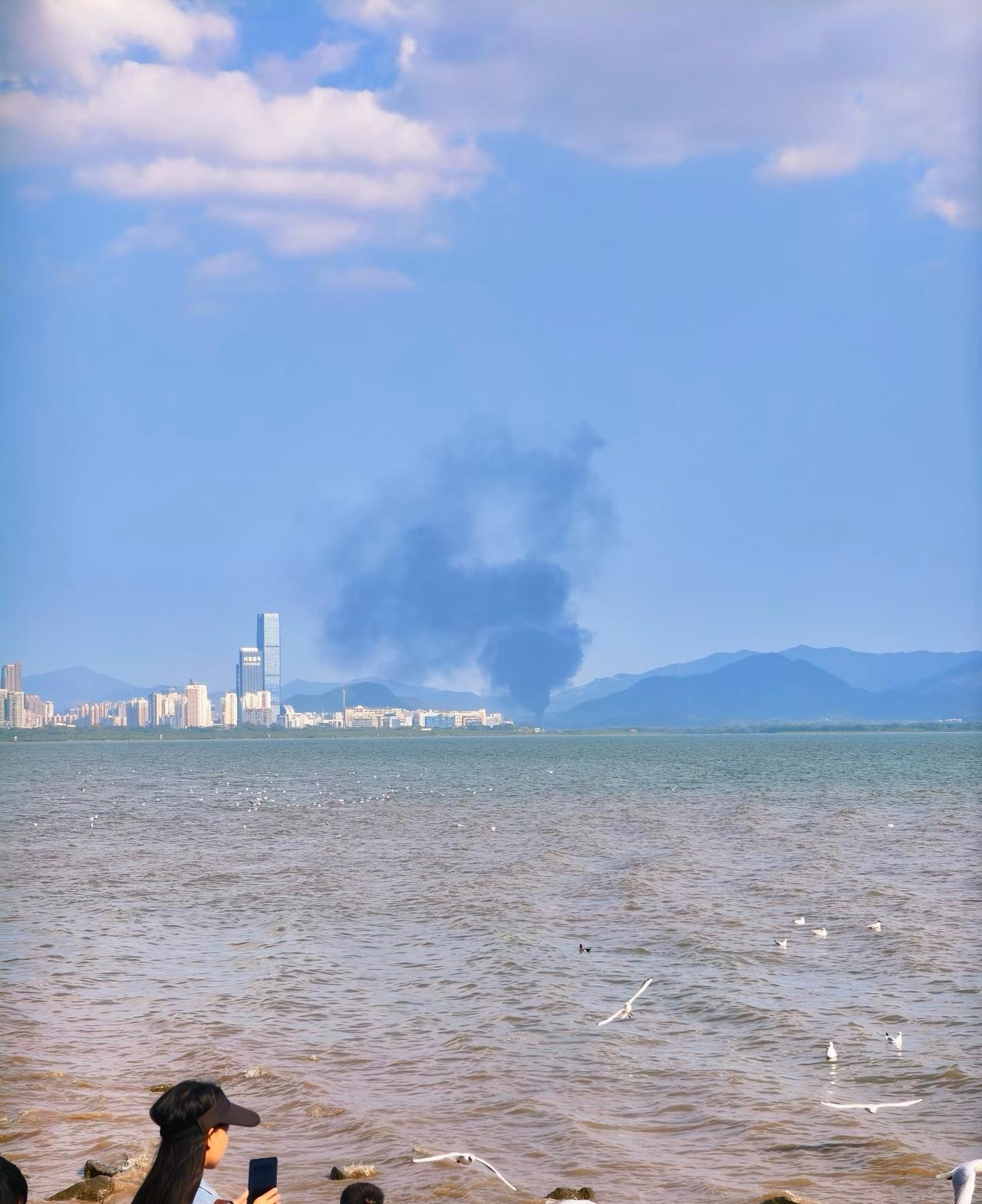 刚从深圳湾回来,吓我一跳!对面那片浓烟滚滚的,我还以为是哪个工厂乱排污,心里正吐槽呢,结果刷到消息说是着火了。看那烟的架势还不小,希望那边赶紧扑灭,别出啥危险才好。