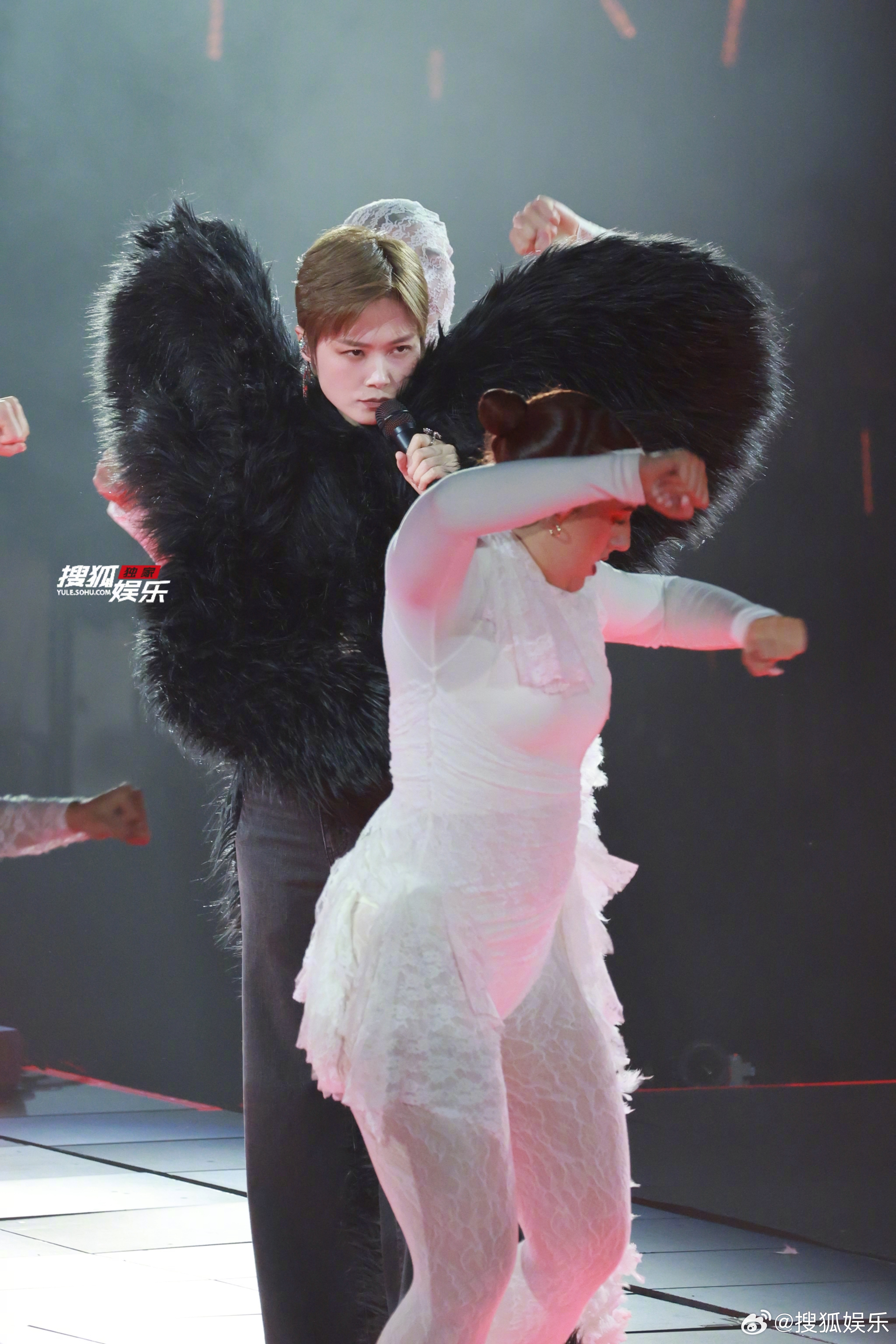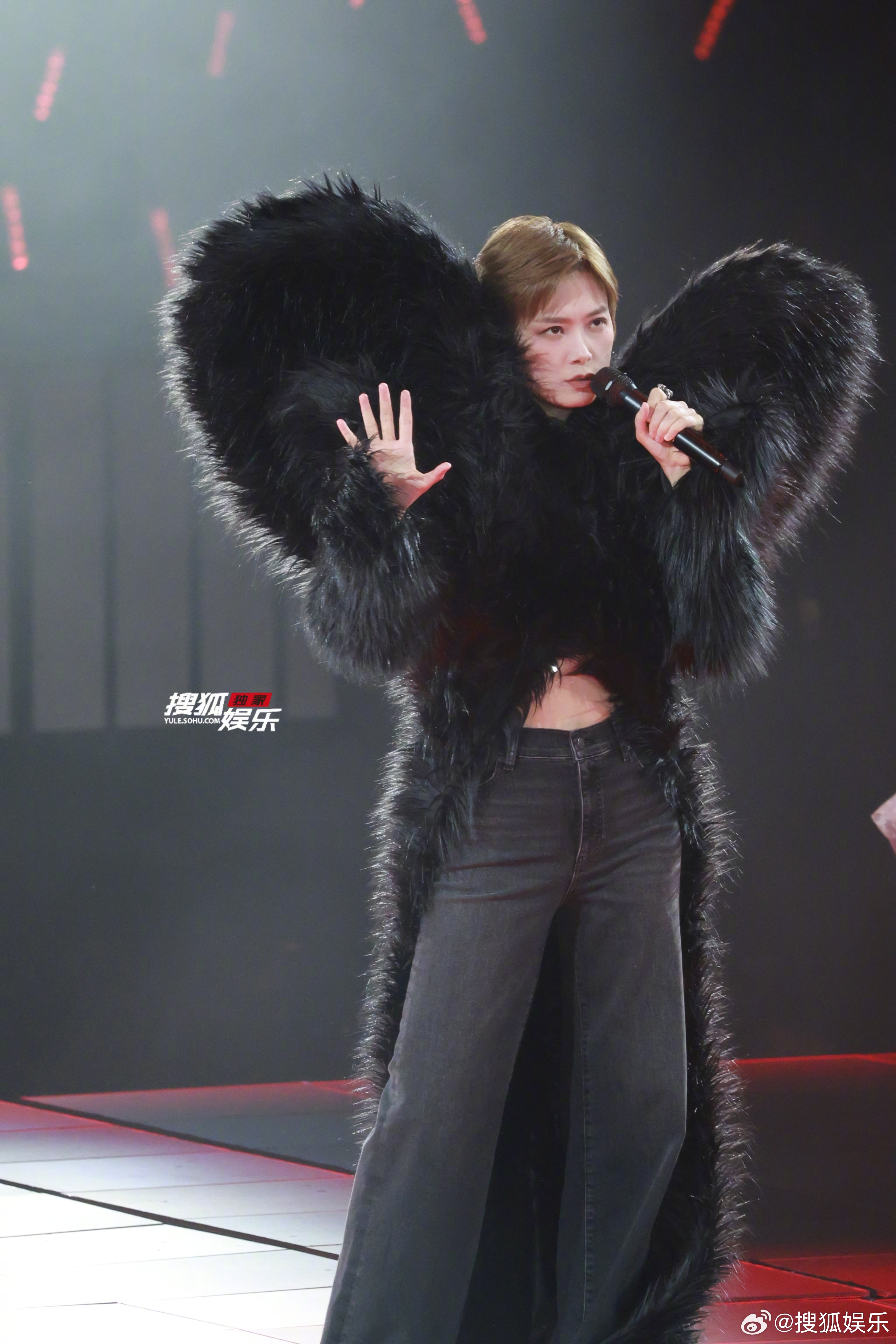 WOW!上海演唱会新look高清美图🈶!黑色羽毛翅膀造型,首穿!是我们霸气又优雅的女王大人李宇春上海演唱会 李宇春黑色羽毛翅膀造型