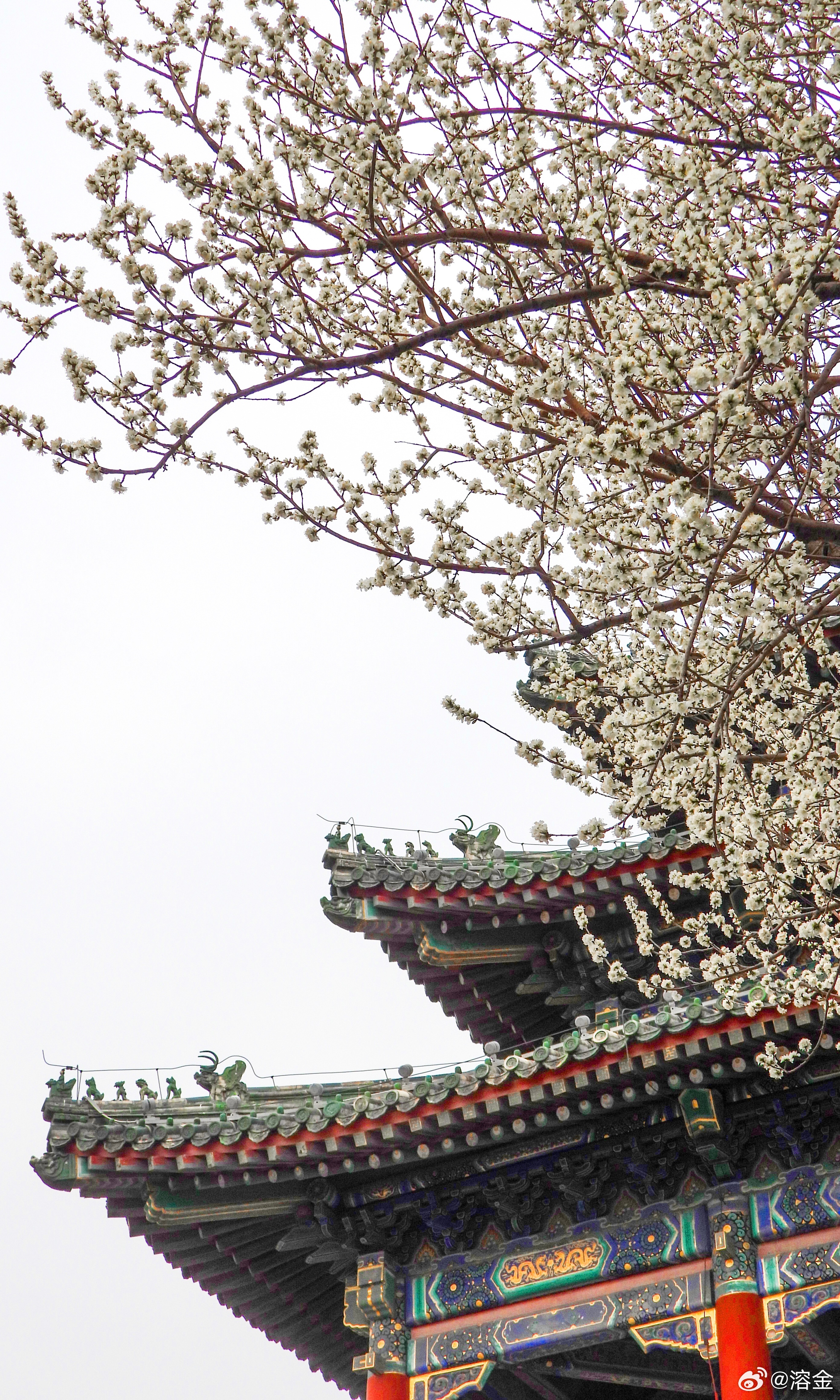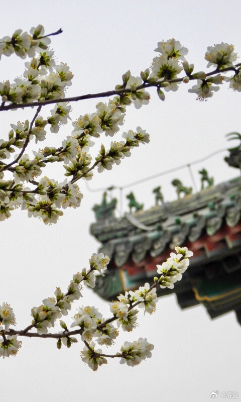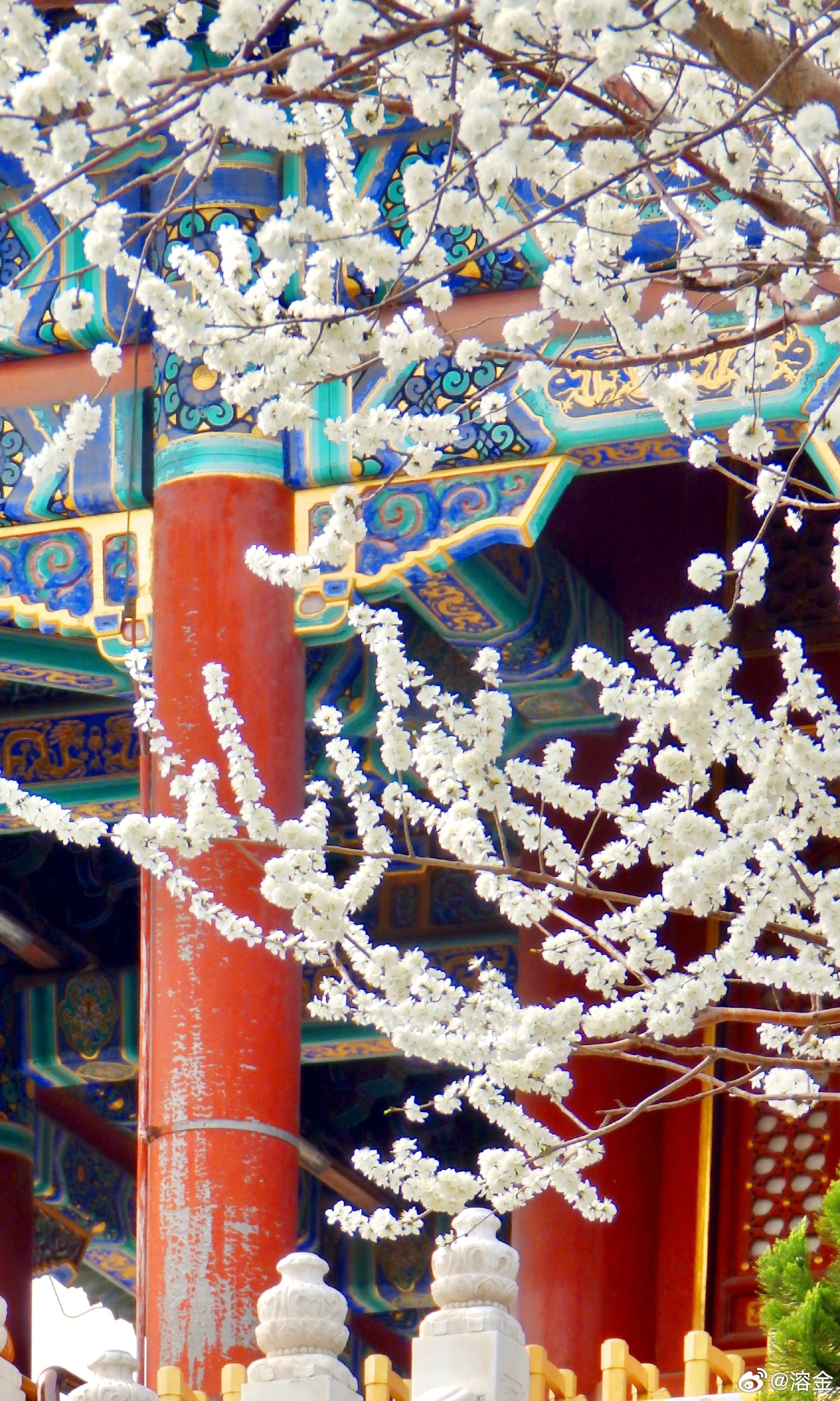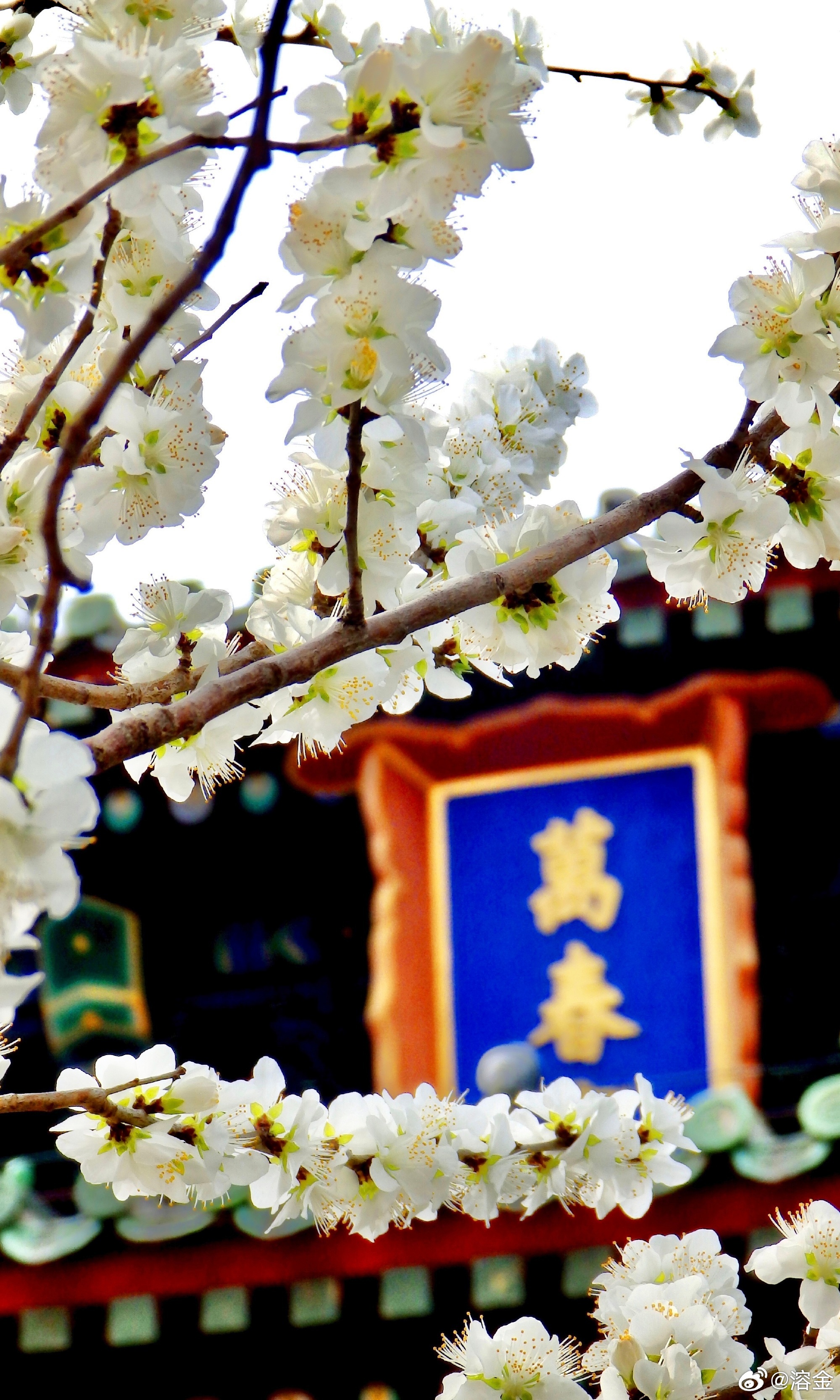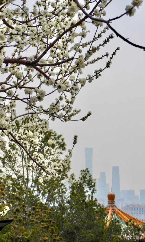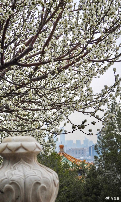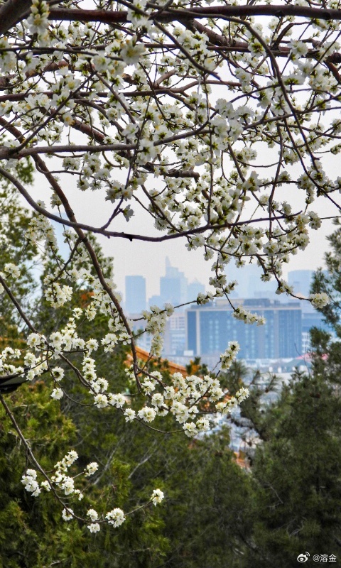 【景山公园 万春亭前白色山桃花】春风吹入武陵源,幻作瑶枝缀景山。玉质冰姿清绝处,秾华不染帝京尘。摄影