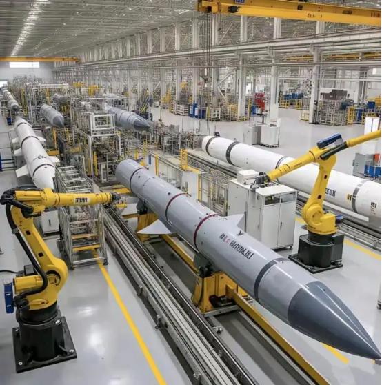 伤害性很大,侮辱性更强。中国罕见地公开了PL-15导弹的全自动生产线,号称一天的极限产量约为100枚,100枚这个数字意味着什么?   麻烦看官老爷们右上角点击一下“关注”,既方便您进行讨论和分享,又能给您带来不一样的参与感,感谢您的支持! 先把最扎心的对比摆上台面,美国现役主力远程空空导弹 AIM-120D,一年总产量也就 1000 多枚。折算下来,一天勉强能造出 3 枚左右。 咱们这条 PL-15 生产线,满负荷跑19 天,产量就能追上美国一整年的量。这种效率差距,放在军贸圈和国防安全层面,都是降维打击。 别以为造导弹就是堆零件、拼手工,PL-15 这条产线走的是完全不一样的路子。车间里 90% 的灯光可以关掉,机械臂靠 AI 视觉和红外定位自主作业。 从零件上料、精密装配、质量检测到成品转运,几乎不需要人工动手。这就是现在最顶流的黑灯工厂,安静、高效、还不出错。 更关键的是,整条产线实现了100% 国产化。核心的导引头、芯片、发动机、高能推进剂,没有一个环节被国外卡脖子。 别人一制裁就停产,我们想造多少造多少,想什么时候扩产就什么时候扩产。这种供应链安全感,全球没几个国家能做到。 PL-15 本身的性能,本来就站在世界第一梯队。自用版射程超过 200 公里,外贸版 PL-15E 也有 145 公里,比很多主流导弹打得更远。 它用双脉冲固体发动机,末端机动能力极强,不可逃逸区大,抗干扰能力拉满,是现代空战里实打实的杀手锏。 性能强还不够,现在又加上了产能无敌的 buff。一天 100 枚,十天就是 1000 枚,半个月顶别人一年。 放到战场上,这就是持续作战能力。空战打到最后,拼的不是谁导弹更先进一点,而是谁能源源不断把导弹送上前线。 以前国际军火市场基本是欧美俄说了算,价格贵、交付慢、还动不动搞政治捆绑。想买先进空空导弹,常常要看别人脸色。 PL-15E 的出现,直接打破了这种垄断。性能不输欧美,价格更友好,交付还稳定,对很多国家来说简直是最优解。 对于中小国家空军来说,不用再被天价导弹掏空预算,也不用担心里程碑式交付一拖再拖。只要下单,就能快速形成战斗力。 中国军工这次公开生产线,相当于给全球客户吃了一颗定心丸。量大、管够、靠谱,这六个字比任何广告都管用。 对内来说,这条产线的意义更加深远。它证明中国高端制造业已经完成了从规模大到效率高的跨越。从全产业链配套,到智能化无人生产,再到快速柔性切换,每一步都是国防安全的底气。 以前我们说制造业大国,更多是指民用领域。现在这条导弹产线证明,军工制造同样走到了世界前列。 平时低调生产,保障国防需求;一旦有需要,立刻可以爆产能,这种潜力才是最让对手忌惮的地方。 有人会问,公开这么核心的生产线,就不怕技术泄露吗?敢亮出来,本身就是一种极度自信。 我们展示的是成熟的、可量产的体系,而不是某一个单一零件。真正的核心技术,藏在算法、材料和工业体系里,想看懂也没那么容易。 这种公开,更像是一种温和而坚定的表态。我们不惹事,但也绝不怕事,工业实力摆在这,底线很清晰。 放到大国博弈的视角里,100 枚这个数字,还有一层很现实的含义。它在告诉外界,中国的军工产能已经进入智能化、规模化时代。 传统依靠人工装配、低效扩产的模式,正在被我们彻底甩开。未来的军事优势,很大程度上来自工业优势。 谁能造得更快、更多、更稳,谁就能在安全格局中占据主动。PL-15 产线,就是这句话最直观的体现。 再回到普通人的视角,这条产线最让人感慨的,是中国制造的升级速度。从过去的低端代工,到现在能造顶尖空战武器。 从人工流水线,到黑灯智能工厂,每一步都走得扎实又迅猛。这不是一夜之间的奇迹,而是多年技术积累和产业链完善的结果。 PL-15 全自动生产线,不只是一条造导弹的线。它是中国军工自信的窗口,是制造业升级的缩影,也是国家安全的坚固屏障。 日产量 100 枚,看着只是一个数字。但这个数字背后,是不受制于人的供应链、碾压级的生产效率、世界一流的导弹性能。 伤害性很大,侮辱性更强,这句话用在这再合适不过。没有夸张的宣传,没有激烈的表态,只用一条生产线、一个产量数字,就说明一切。 未来国际军火市场的规则,可能会因为这条产线悄悄改写。更多国家会拥有性价比更高的装备,西方垄断的局面一去不复返。 对我们自己而言,这是安全感,是底气,是说话更有分量的硬支撑。军工强,则国防安,国防安,则发展稳。一条安静的黑灯生产线,每天造出 100 枚护国利剑。这画面不喧哗,却足够有力量。 信息来源:央视军事公开报道、央广网、中华网军事、环球网军事、简氏防务周刊公开评估数据