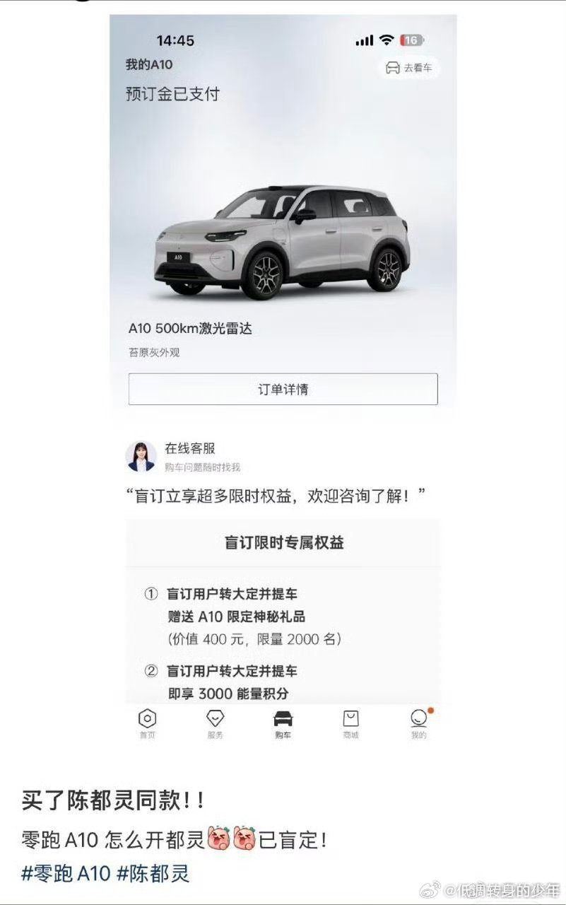 陈都灵的小铃铛们好有实力啊!陈都灵 代言零跑汽车后,粉丝也在哐哐晒单!你们当这是玩具车呢