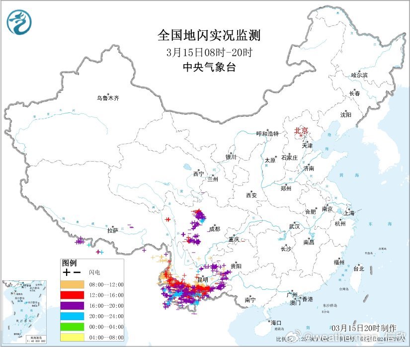 【对流】今天白天,云南多地监测到雷电活动,云南西南部等地出现了短时强降雨等强对流天气。今晚到明天,云南的对流总体减弱,但在云南西南部、贵州中南部等地局地将有短时强降水天气,小时雨量20-30毫米。