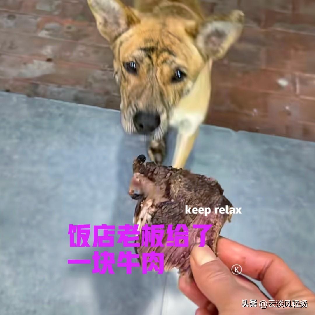 饭店准备打烊的时候,突然来了一只流浪狗。狗子乖乖地坐在门口,好像在等待着什么。饭店老板看到后,感紧到厨房拿了一块牛肉,狗子小心翼翼地接过牛肉,转身就跑开了! 狗子离开后没多久,又跑了回来,老板又给了它一块牛肉,狗子还是没吃,衔着牛肉跑开了。狗子是只母狗,看样子应该在哺乳期,老板猜测,狗妈妈应该是把牛肉拿回去喂小狗了! 据饭店老板介绍,狗子已经出现在这里几天了,如果店里有剩菜剩饭,他就会放到门口,等狗子来吃。狗子也非常懂事,每次都是等客人离开之后,它才会出现在饭店门口! 饭店老板被狗妈妈的行为感动了,等混熟之后,他再想办法妥善安置狗妈妈的一家。其实动物也有感情,狗妈妈自己舍不得吃,宁愿饿着也要顾着小狗,说明了动物界的母爱也可以很伟大!