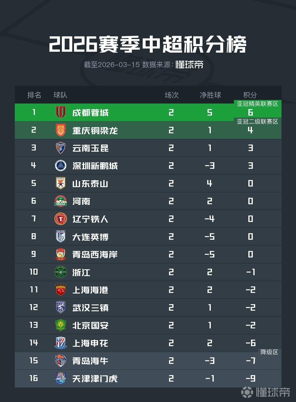 中超黄渤海四队两连败,都是两连客 中超第二轮结束,4支球队两连败,分别是:辽宁铁人、大连英博、青岛西海岸和青岛海牛, 四支球队各有各的问题,发挥都不理想,当然还有一个重要原因,就是四队都是两连客,连续客场对球员发挥有一定的影响,下一轮4支球队全部回到主场,情况可能会好一些。 这里边情况最糟糕的是青岛海牛,因为-7开局,其他队输了还是0分,海牛得到什么时候才能“归零”呢?