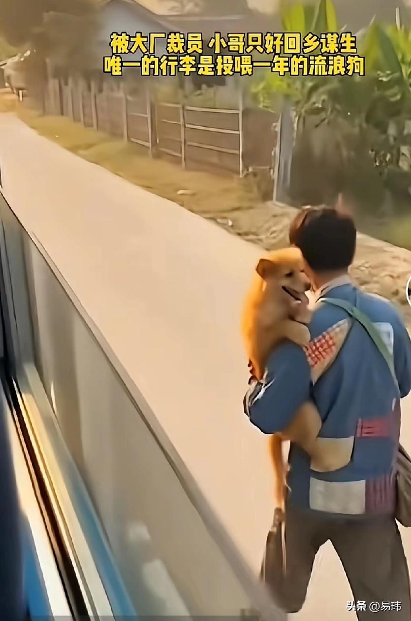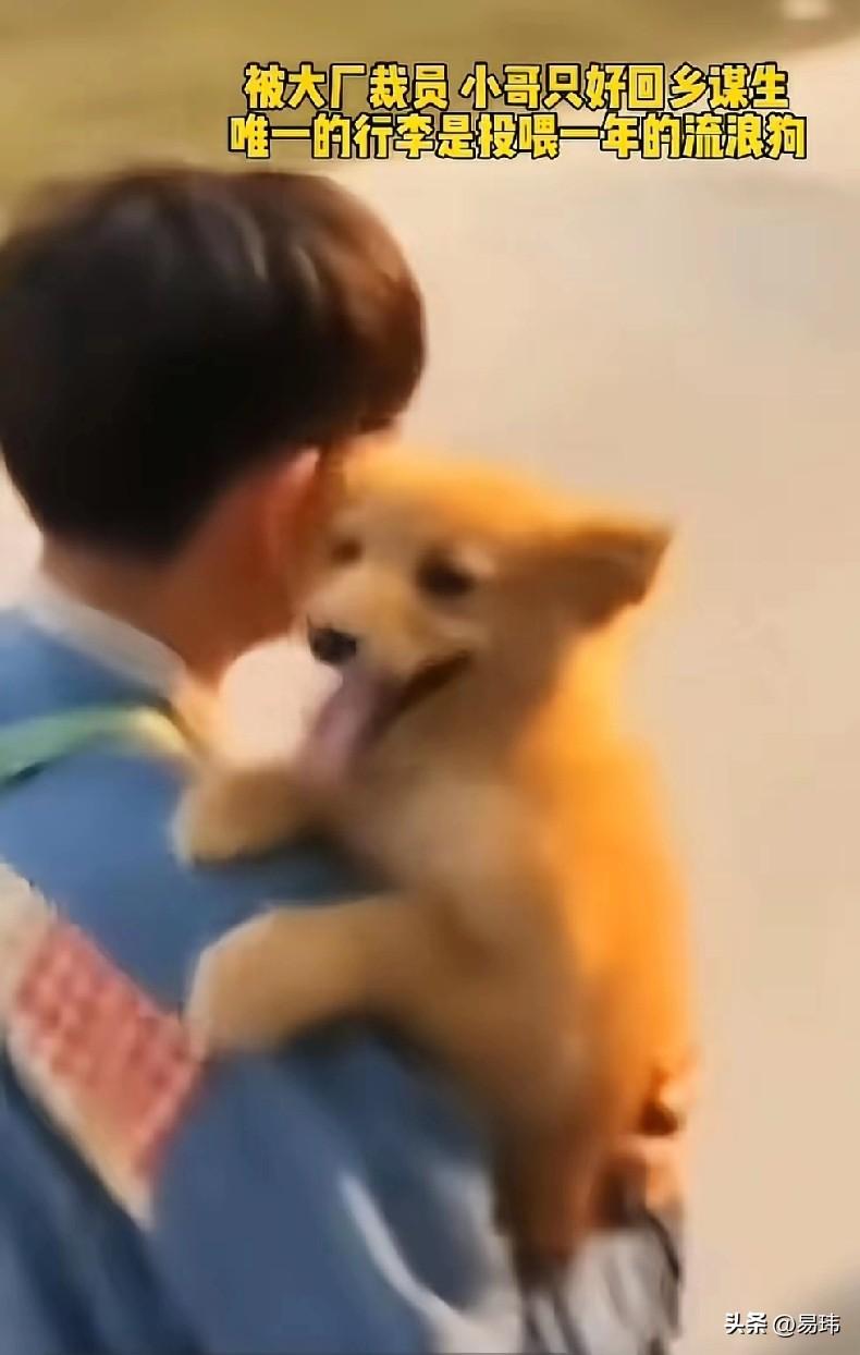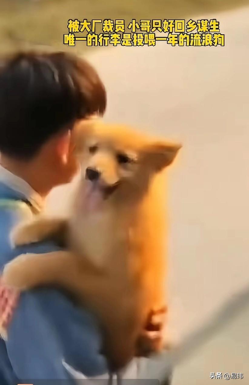 泪目了!一位小哥哥在一个大厂工作,可遗憾的是由于最近经济环境不好,他惨遭裁员,而城里的消费太高,他只好选择回乡谋生,而他唯一的行李就是投喂了一年多的一只流浪狗。 他背着一个布袋,却将狗狗抱在怀里,就这样踏上了回乡的道路,需要可能没有之前那么高的收入,可他对狗狗的爱却从不打折,依旧会十分的宠爱它,这也是狗狗的幸运,遇到这么好的小哥哥!