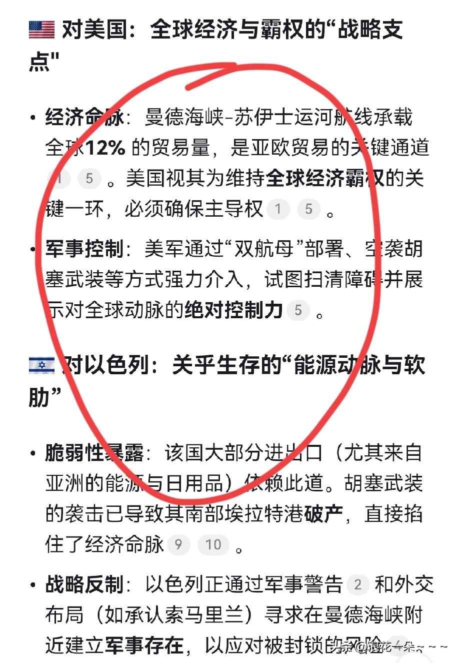 快讯!快讯!硬气胡塞武装 就在刚刚,胡塞武装威胁对美国和以色列封锁曼德海峡! 统治也门北部的什叶派安萨尔真主运动(胡塞武装)武装部队道德训练部副部长阿贝德·萨乌尔表示,该运动可能封锁曼德海峡。 分析人士认为美国和以色列千万不要再犯下重错,特别是不要再袭击伊朗的重要港口哈尔克岛,因为那里是伊朗的经济命脉!一旦发现战略错误,胡塞武装可能会在另一个海峡重演霍尔姆斯海峡的局面。 即:“可能的措施包括关闭曼德海峡,并全面禁止驶往敌人以色列的船只通行。” 用真主党领导人的话说,胡塞武装已做好“扣动扳机”的准备。 关于胡塞武装和以色列的对抗,我看国际社会也非常关注,特别是联合国都站出来呼吁双方赶紧停火,包括法国总统马克龙也呼吁双方不要再继续战斗。 所以说,针对胡塞武装的这一表示,美国和以色列要三思而后行啊。曼德海峡对美国和以色列有多么重要请看图二!看完之后,牛逼吧。[捂脸] 信息来源,俄罗斯卫星通讯社。