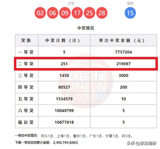 双色球26028期:湖北合买团三箭齐发,憾失头奖仍揽71.7万 双色球第26028期开奖揭晓,湖北彩民合买的三张14+1大复式迅速走红。三张票红球号码完全一致,仅蓝球不同,精准命中当期全部红球,可惜与蓝球15擦肩而过,每张均斩获二等奖。 三张彩票火力全开,合计拿下71.7万元奖金,虽与千万头奖失之交臂,已是十分难得的好成绩。这组投注展现出超高水准,也让不少彩民为之惋惜。 三张复式合力拿下高额奖金,虽留遗憾,但已是令人羡慕的幸运结局。但是对于普通彩民而言,这样的大复式还是看看算了,购彩请理性,娱乐为主,量力而行。