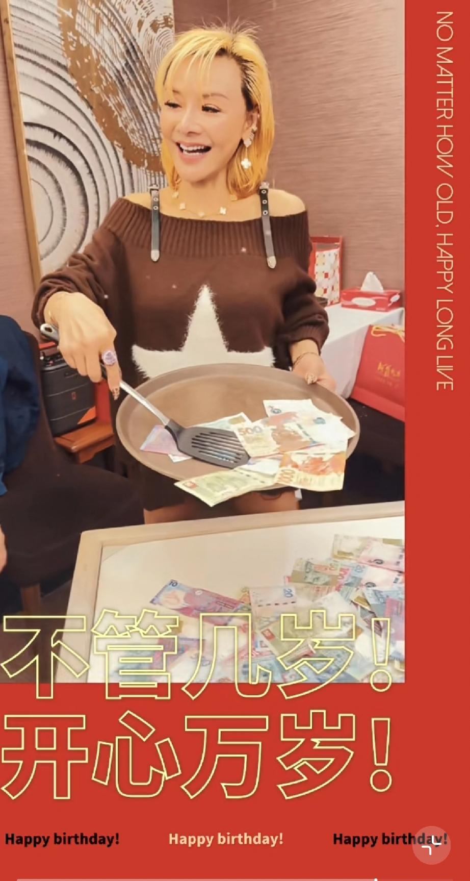 叶子媚宴请汪曼玲等好友吃开年饭,叶子媚上半身缩水,有点像老太太! 3月15日,中国香港汤臣国际的娱乐大佬汪曼玲晒出叶子媚请她和几位好友一起吃饭的视频。 原来叶子媚请他们吃的是开年饭,到现在才吃,都已经过完年了,说明叶子媚挺忙的,汪曼玲也每天有约饭,到现在才有机会聚一下。 叶子媚60岁了,还是富婆,饭没开始吃,就玩了捞钱的游戏,桌子上摆着一沓钱,捞到多少就是多少,嘉宾需要把眼睛蒙上,感觉这个游戏很好玩,也有新鲜感。 叶子媚依旧妆容精致,留了短发,头发染了金黄色,这个年纪还染头发,说明她的爱美之心从未变过。 可惜的是,她下半身缩水明显,不像年轻时那么性感了,毕竟60岁了,身材变干瘪了,没有前凸后翘了。 她的腿好细,个子不高,只有1米62,这么看就是肚子比较大,胸部缩水,而腿又细,特别像是浓妆艳抹的小老太太。 汪曼玲75岁了,叶子媚也60岁了,他们玩得很开心,除了有钱,就是心态好。 叶子媚与汪曼玲合影时笑得很开心,她虽然至今是单身,无儿无女,但老年并不孤独,她依然像年轻时那样打扮取悦自己,还有好朋友相伴。 可惜的是,她的身材比不上年轻时了,缩水严重,越来越像老太太。
