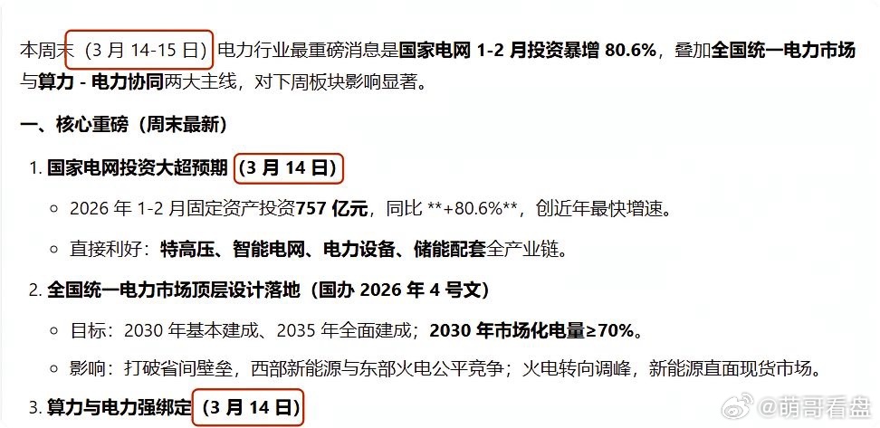 周末最受关注的就是电力!明明有政策、资金多重利好,可很多人还是踩了老坑 —— 周五追高进场,直接吃了一根中大阴线,追涨被套的戏码,真的别再重演了,短期内电力也很难再创新高。周末消息面整体平静,明天周一开盘,大家最关心:是接着跌,还是能反弹?该加仓猛干,还是赶紧离场?三个干货点,一分钟给你讲明白,老朋友点赞收藏,新朋友不妨点个关注,全是实战经验。第一,春季行情已经结束,这是多年反复验证的规律,不要轻易质疑;第二,近两周市场波动偏小,靠的是神秘资金护盘,现在任务完成、资金要退出,盘面会有压力;第三,周五全球股市普遍收绿,周一开盘我们也不宜乐观。我们观点很明确:下周容易回调,操作难度会加大,各位老铁谨慎操作,加油!