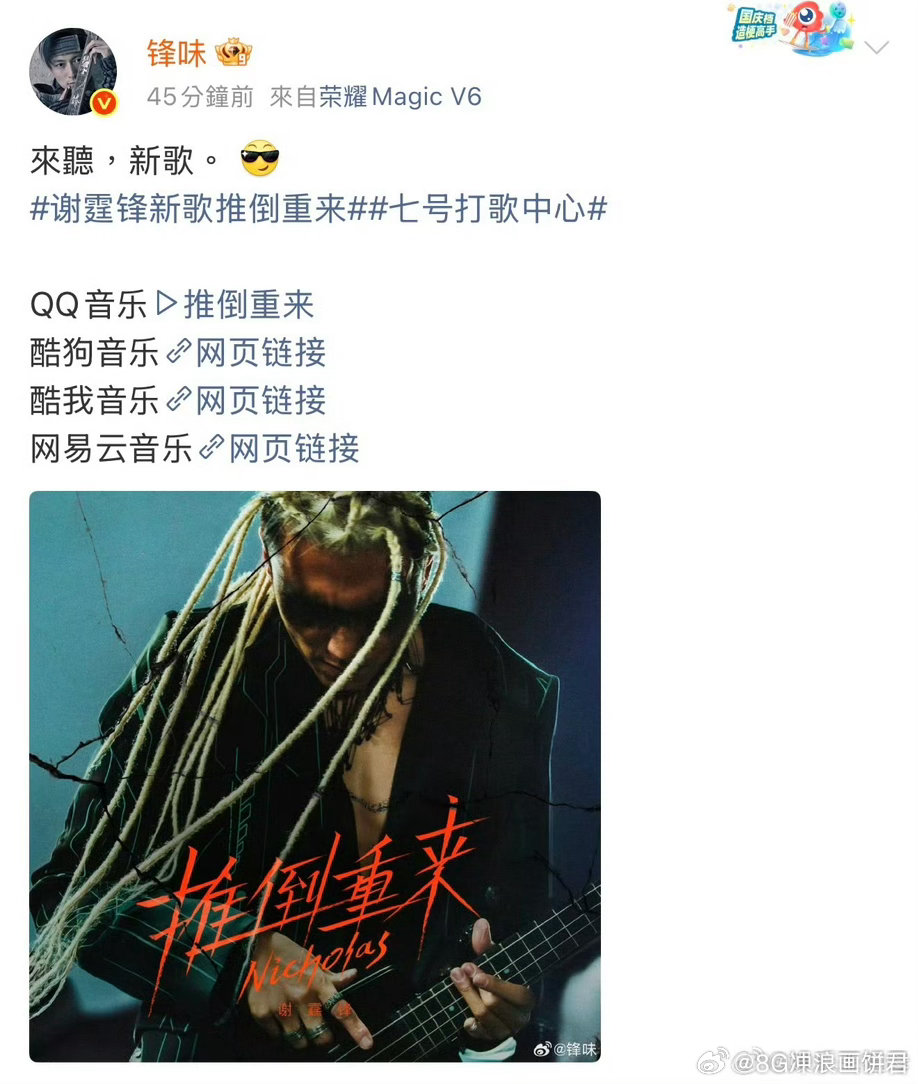 谢霆锋金发脏辫锋哥这波摇滚暴击,把《推倒重来》唱成了宣言书——是非颠倒又何妨?我偏要推倒重来,重新定义规则!