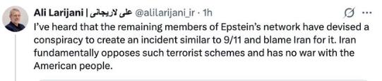 【阿里·拉里贾尼声称美国可能会策划类似9/11的袭击来指责伊朗。】