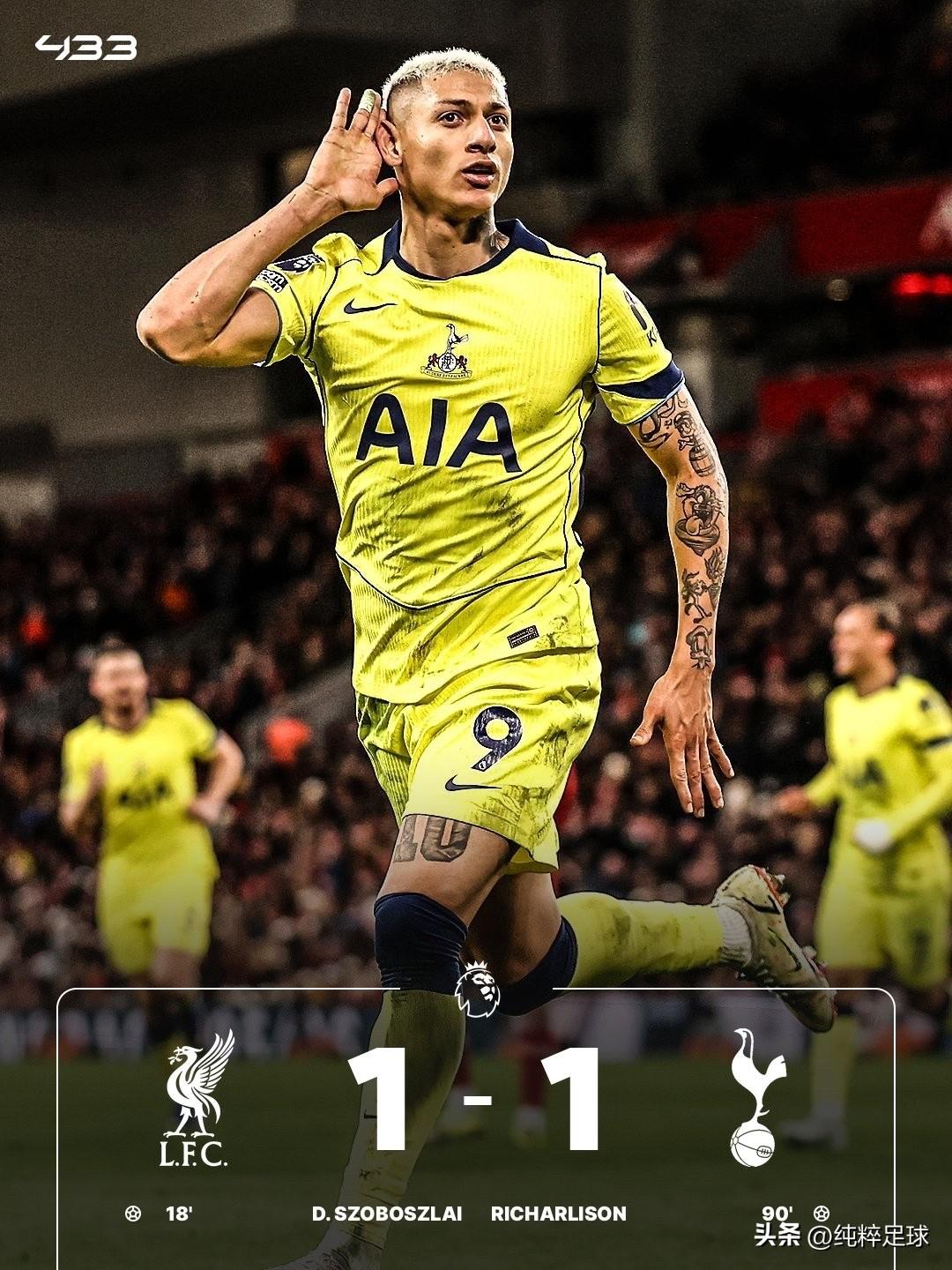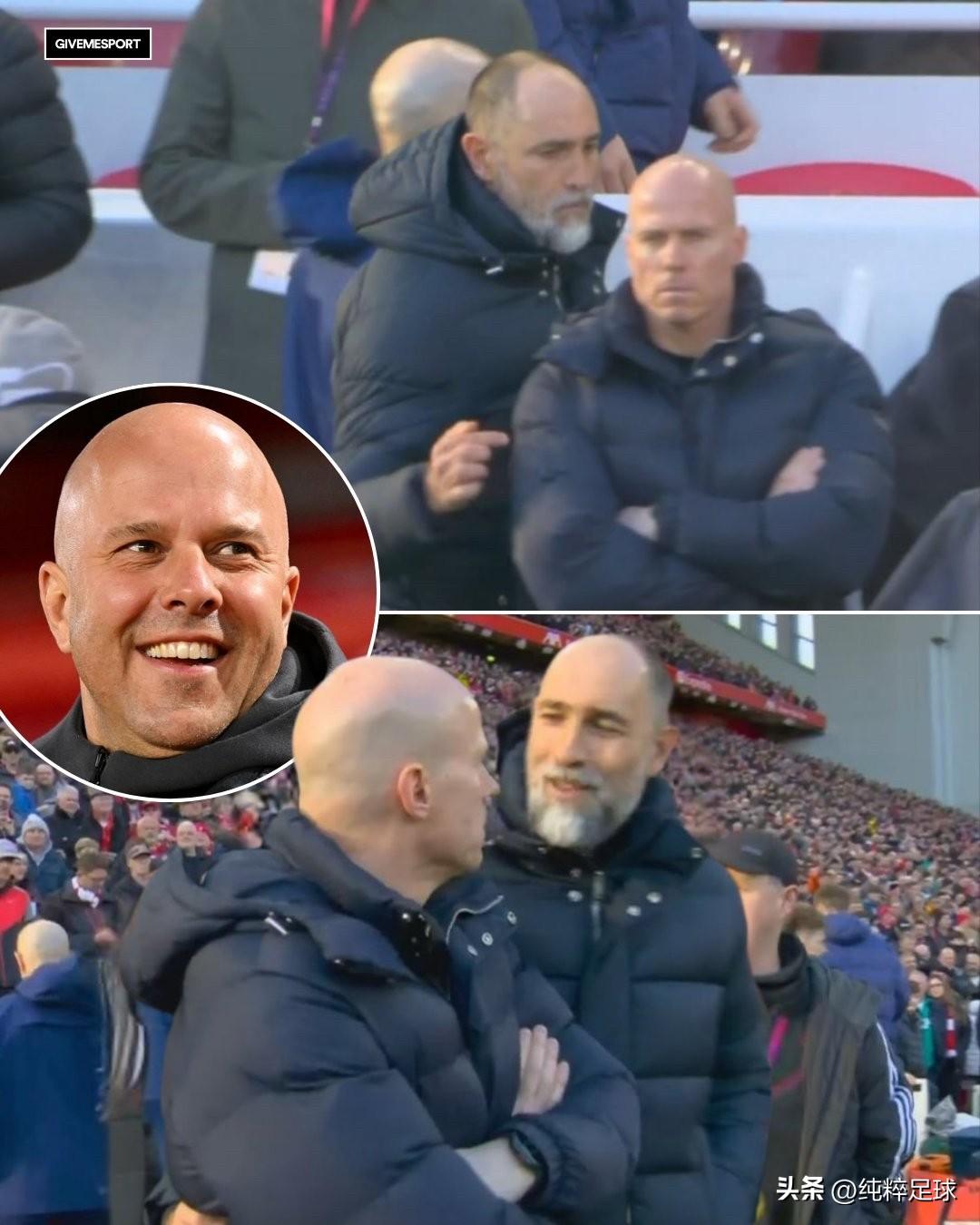 虽然索博斯洛伊打进赛季第四粒任意球,但利物浦还是习惯性在比赛尾声丢球,主场1-1被需要为保级而战的热刺逼平,已逐渐在下赛季欧冠席位的竞争中掉队。这么踢下去,斯洛特下赛季的帅位实在难保。 图多尔终于率队拿到执教以来的首个积分,排名第16,领先诺丁汉森林1分。而下场比赛正是对阵诺丁汉森林。 赛前发生有趣一幕,图多尔误将热刺的一名光头工作人员当作斯洛特,可见图多尔这个救火教练上任得有多仓促,简直不要太尴尬。不过还是希望他们振作精神,发挥越来越好,后面可以阻击曼城,不为北伦敦的死对头,也要为自己的保级而战。[捂脸]