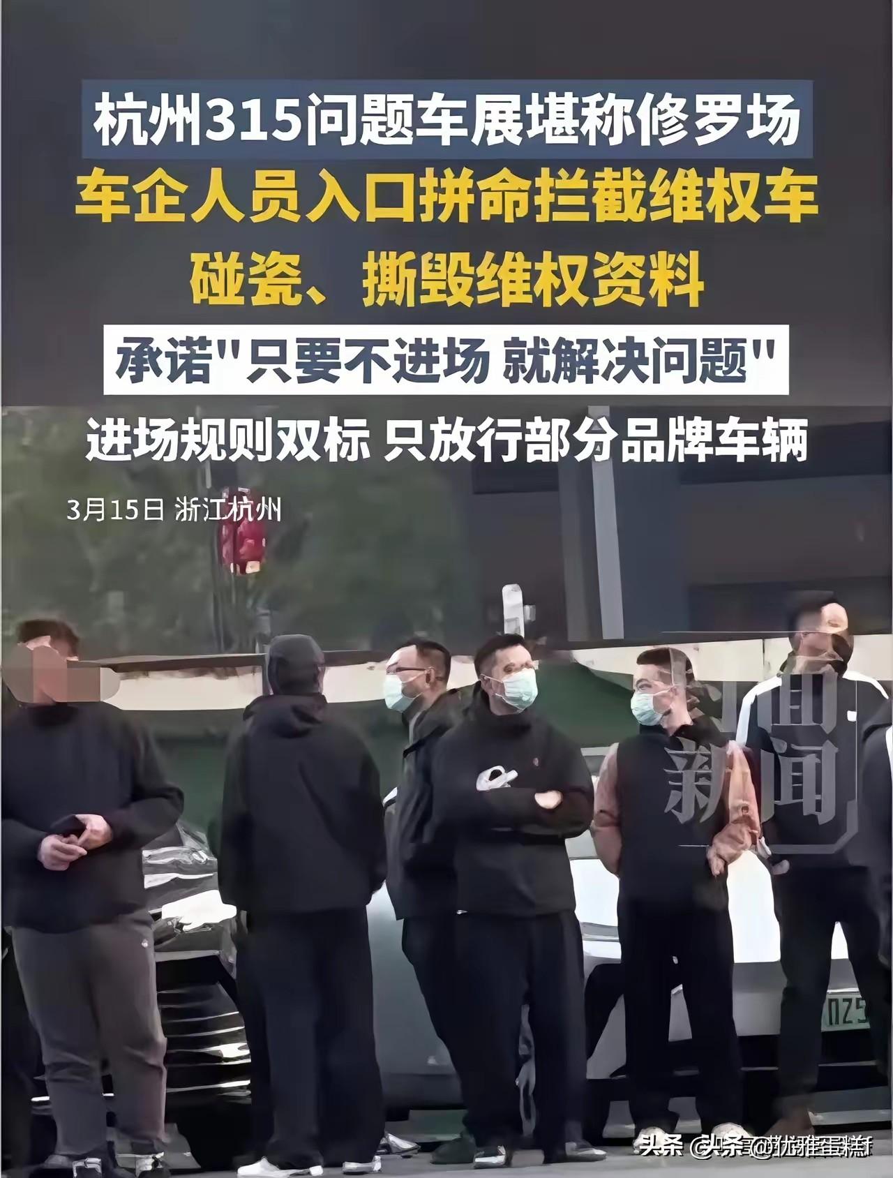 今天杭州315问题车展上,那场面真是让人哭笑不得。有车企人员为了拦住维权车进场,