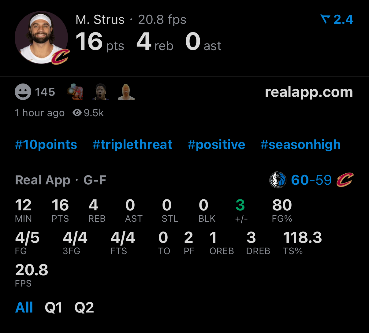 斯特鲁斯半场16分4板三分4中4🔥
