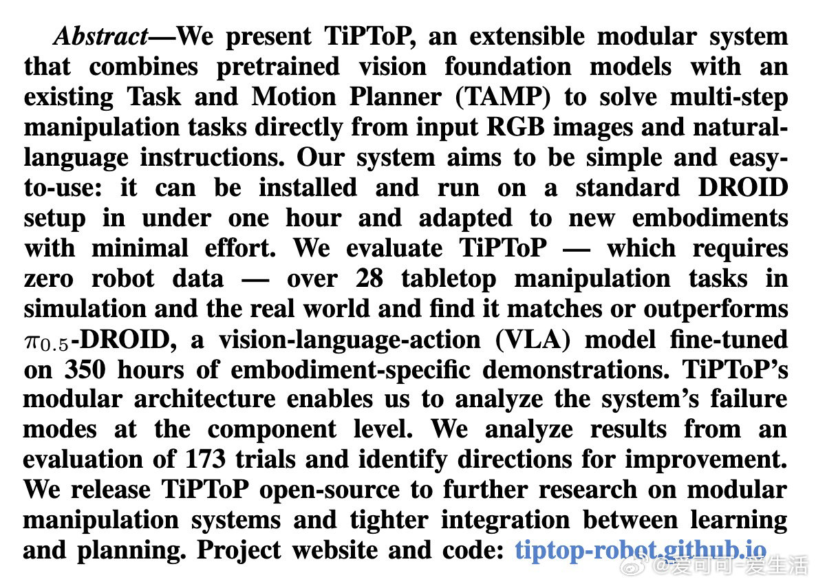 [RO]《TiPToP: A Modular Open-Vocabulary Planning System for Robotic Manipulation》W Shen, N Kumar, S Chintalapudi, J Wang… [MIT CSAIL] (2026)