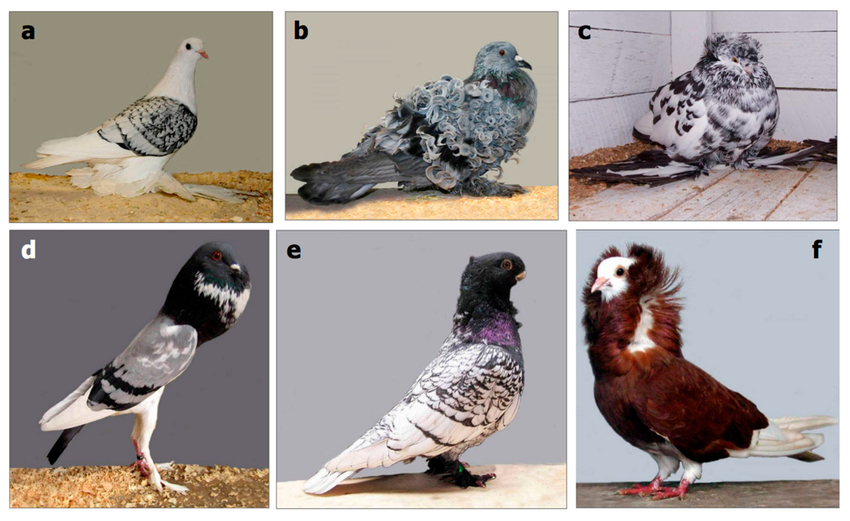 鸽子里居然有褶背鸽这么漂亮的物种¹ 卷毛鸽!英文叫frillback pigeon。² 图2的b就是。还有很多种特别的鸽子:冰鸽、英国喇叭鸽、侏儒球胸鸽、东方皱胸鸽、红僧帽鸽。热点科普