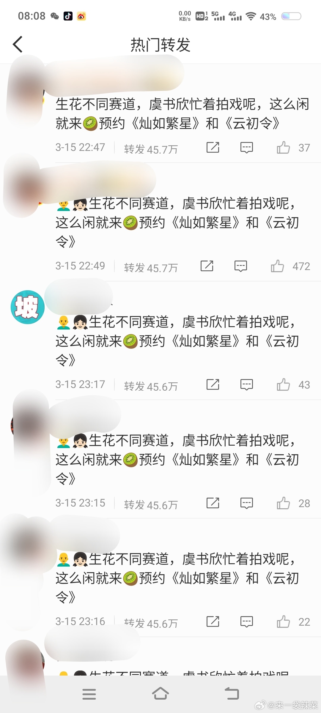 虞书欣家目前已占领某转发区排字前排,两家打的很激烈,打一晚上了,还是建议多关注两位演员作品都有待播剧曝白鹿虞书欣绝交了
