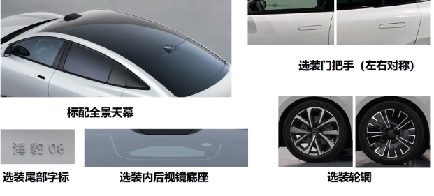 比亚迪 海豹08 DM-P 插电式混合动力轿车 看起来比概念车还霸气,车身比例为:5150 ×1999 ×1505,而且还有汽油/电混合动力可选,除此之外,该车电池还是磷酸铁锂蓄电池,看来比亚迪这来势不小呀!