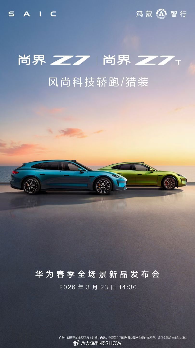 华为春季发布会定档3月23日华为春季发布会含金量很高啊,享界双车新配色亮相,问界M6官宣3月23日开启小订 尚界Z7也将开启小订,还有畅享90系列,长沙见了哈