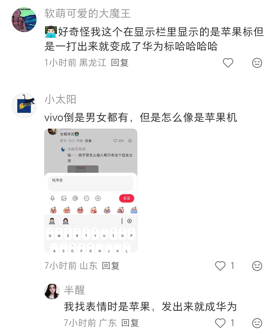 👩💻👨💻不同的手机打这个表情包,电脑上logo不一样吗