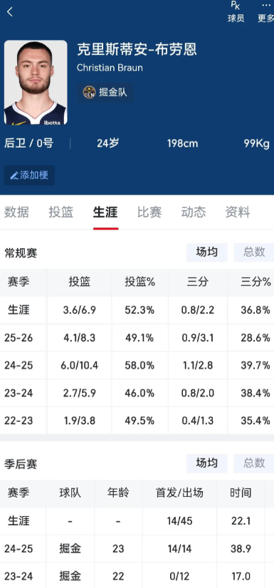 本赛季: 场均10.9分,命中率49.1%,三分28.6%,罚球命中率74.4%