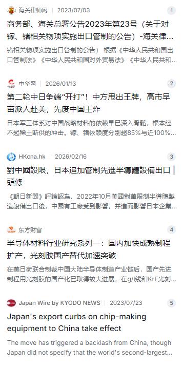 后悔为时已晚?日本拉黑110家中企、停供芯片原料,中方反制却更快 本以为老美对我国光刻机的封锁已经够狠,没想到“下手”更可怕。 麻烦看官老爷们右上角点击一下“关注”,既方便您进行讨论和分享,又能给您带来不一样的参与感,感谢您的支持! 最近这几年,芯片成了大国博弈的必争之地。大家都以为老美对我们光刻机的围堵已经够狠了,没想到真正让国内半导体圈捏把汗的,是隔壁日本的动作。去年,日本政府正式挥下“管制大刀”,把包括光刻胶在内的23种关键半导体材料列入出口限制清单。这一招直接掐住了芯片制造的“咽喉”,而且不同于美国只针对顶尖设备,日本的管制覆盖面更广,直接对准了110家中国企业和研究机构,摆明了要在高端芯片原料供应上给中国“断粮”。 消息一出,业界震动。很多人不知道,光刻胶这东西虽然不起眼,但在芯片制造中必不可少。没有它,再先进的光刻机也刻不出电路。日本企业在全球光刻胶市场长期处于垄断地位,高端KrF和ArF光刻胶的市场份额一度超过90%。如果这招真把路堵死,国内不少晶圆厂可能面临“无米下锅”的窘境。日本的算盘很精,想通过控制上游材料,拖慢中国半导体产业的升级速度。 可这回日本没想到的是,中方的反制来得又快又狠。就在日本宣布限制措施后不久,中国商务部扔出一枚“重磅炸弹”:从2023年8月1日起,对镓和锗相关物项实施出口管制。这俩名字听着生僻,却是实打实的工业味精,更是半导体、军工和新能源产业不可或缺的原材料。中国在全球镓、锗供应链中占据绝对主导地位,日本90%以上的相关进口都依赖中国。 这一下直接打到了日本的七寸上。别看日本在材料技术上牛气冲天,但在稀有金属资源上却是个“穷光蛋”。镓和锗不仅是制造化合物半导体的核心材料,更是日本军工产业的心头肉。战斗机发动机的叶片、导弹的制导系统、光电探测仪,都离不开这两种金属。一旦供应卡壳,日本引以为傲的防卫产业就可能陷入“无米之炊”的尴尬。 这场供应链博弈很快就从政府层面传导到了市场层面。日本企业最先感受到寒意,对华出口受阻的预期直接引发了资本市场的震荡。日经指数中与半导体、机械制造相关的板块应声下跌,那些原本依赖中国稀土和镓、锗材料的巨头股价波动明显。数据显示,日本芯片制造设备的出口额连续下滑,甚至创下近四年新低。 中国企业这边也不好过。虽然反制打得漂亮,但短期内的阵痛是实实在在的。由于日本在高端光刻胶市场的垄断地位,限制令生效后,国内部分晶圆厂确实面临材料供应紧张的局面。一些企业不得不紧急寻找库存,或者调整生产节奏,整个供应链进入了艰难的成本重构期。这场较量没有赢家,只有被迫适应新规则的企业。 然而,压力往往也是最好的催化剂。日本这一封锁,意外地给国产光刻胶产业打了一剂强心针。以前国内晶圆厂为了追求良率和稳定,倾向于采购成熟的日本产品,国产光刻胶即使做出来也很难进产线验证。现在外部的供应链断了,下游厂商不得不给国内供应商“开门”。 机会的大门一开,国产替代的步伐快得惊人。过去几年还在实验室里打转的KrF、ArF光刻胶,开始批量进入国内芯片产线进行验证。彤程新材等国内企业自主研发的产品逐步取得突破,上海的年产1.1万吨光刻胶工厂已经竣工投产,部分ArF光刻胶的各项指标已经能对标国际大厂产品。虽然高端市场仍有差距,但至少在中高端领域,日本企业“一言堂”的局面正在被打破。 回过头看,这场由地缘政治引发的技术封锁与反制,像是一场极具风险的“对赌”。日本试图用几十年的技术积累作为筹码,赌中国离不开它的材料;而中国则拿出全产业链的优势,赌日本离不开它的资源。结果证明,单纯靠单一环节的优势搞供应链霸凌,不仅堵不住别人的路,反而逼出了一个更强大的竞争对手。 事实证明,核心技术是买不来的,供应链安全也是求不来的。从光刻胶到稀有金属,中国正在从点到面地补齐短板。虽然前路仍有挑战,但这场博弈让所有人看清了一个趋势:在半导体这场长跑中,只有掌握全链条的自主可控,才能真正挺直腰杆。