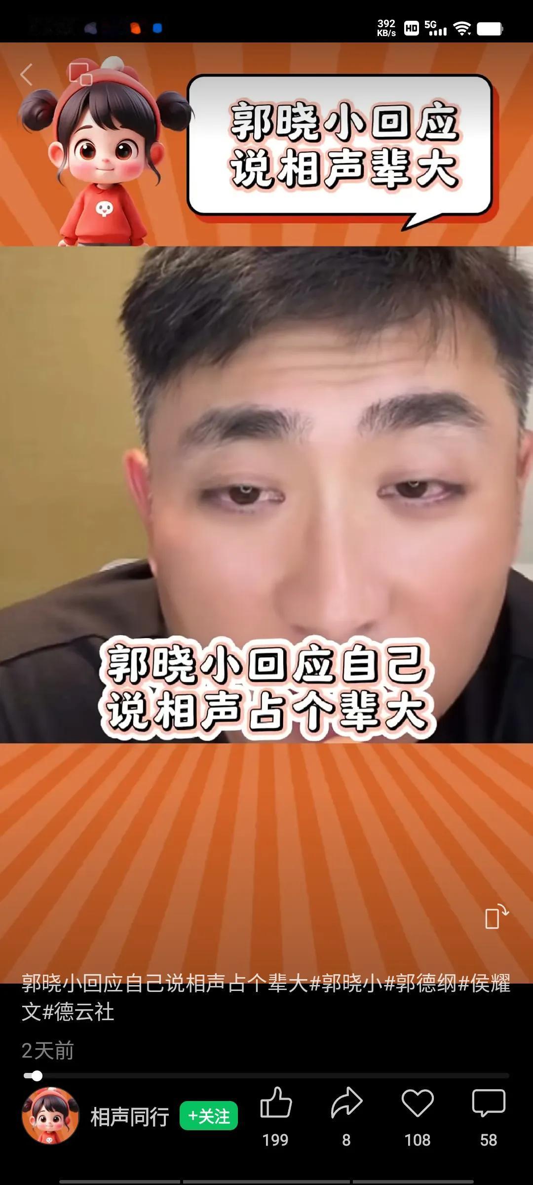 郭德纲被约谈,义薄云天站出来,在直播间为老郭拨闯,他情绪激动地说:“跟一个艺人扯