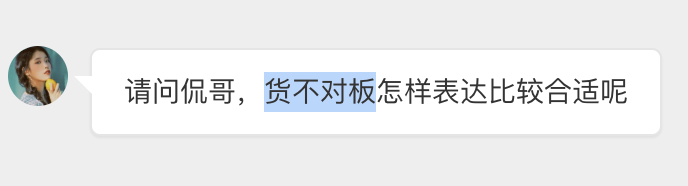 "货不对板"指买家收到的商品与卖家的描述不符合,可以翻译为 The item i